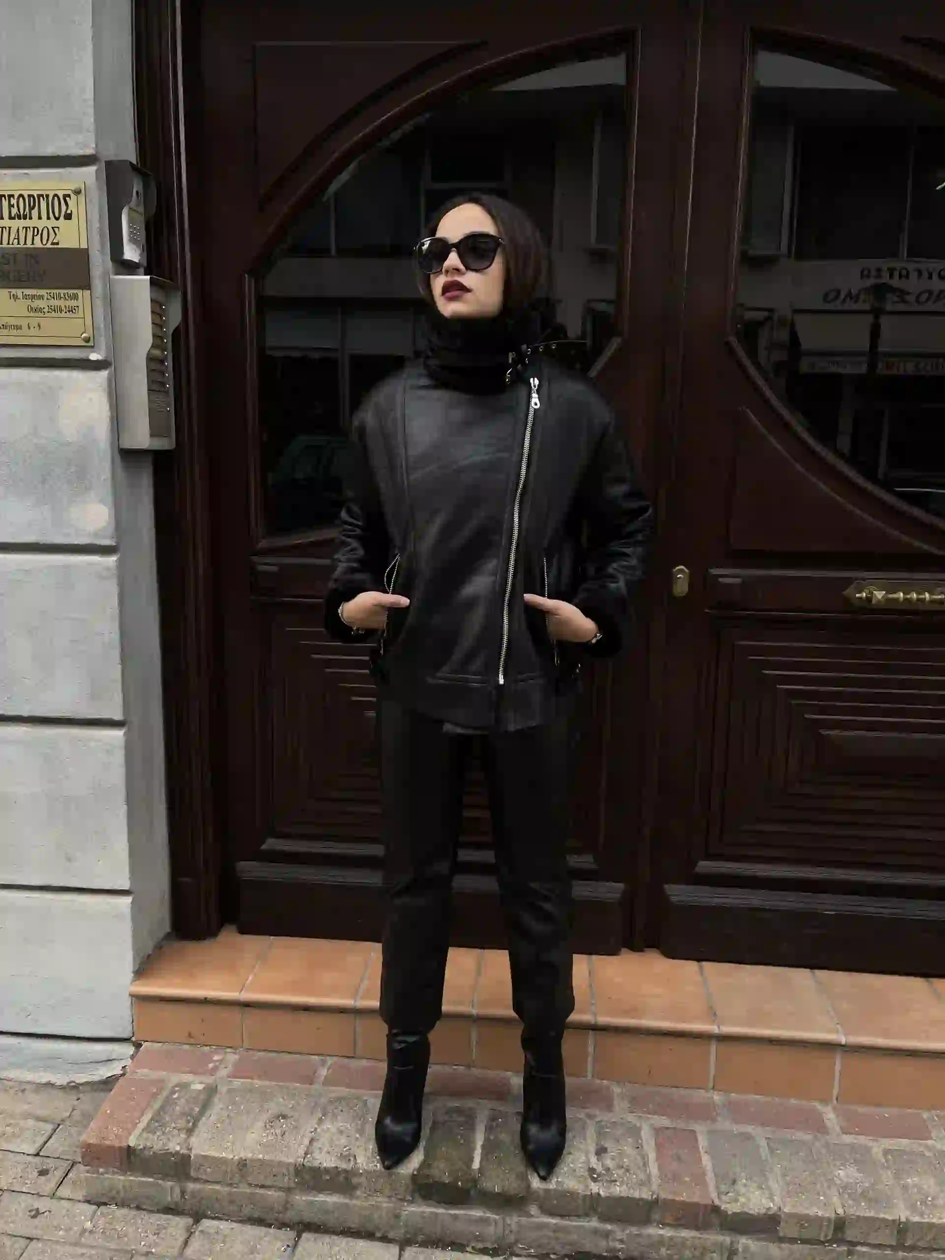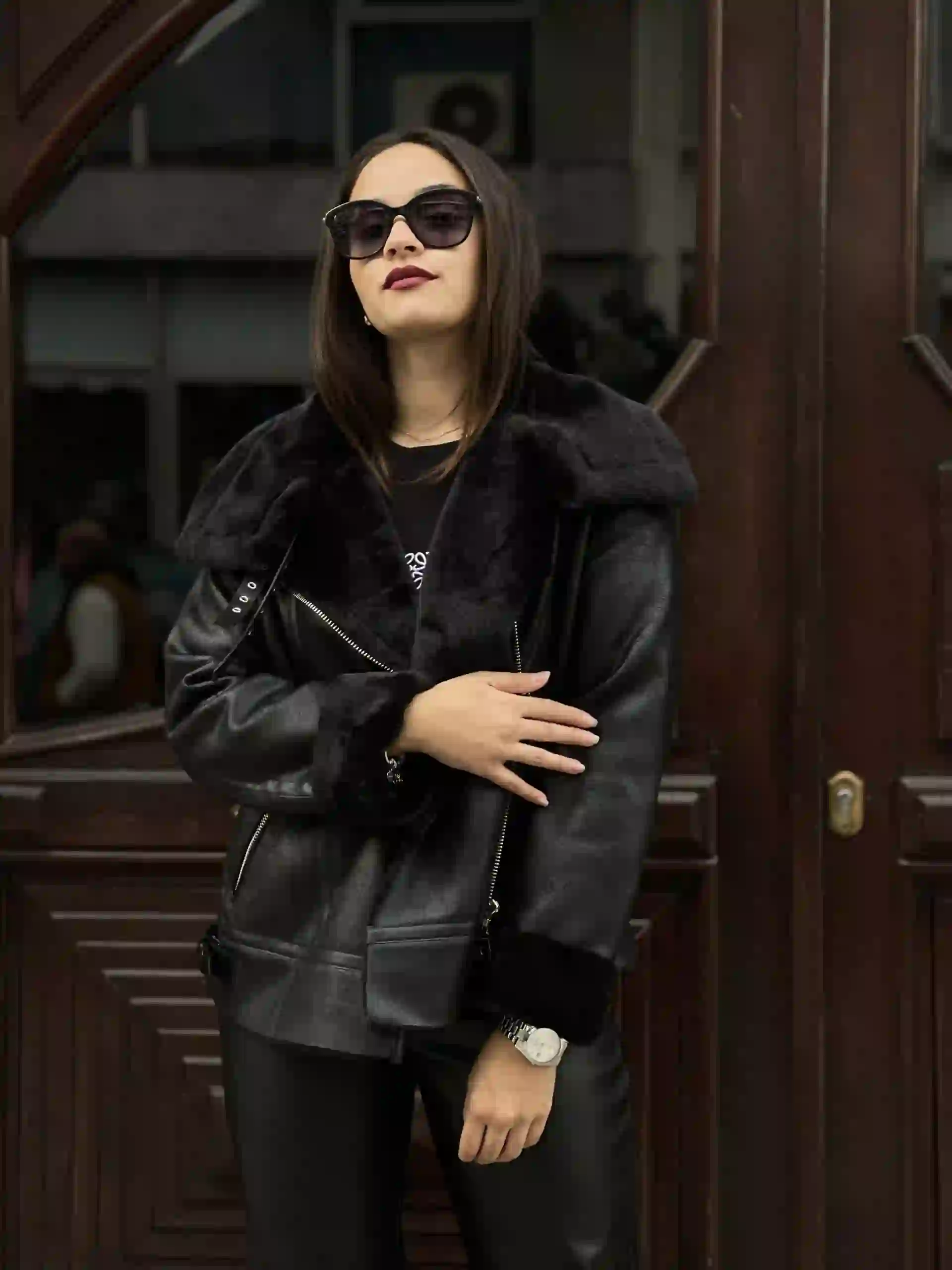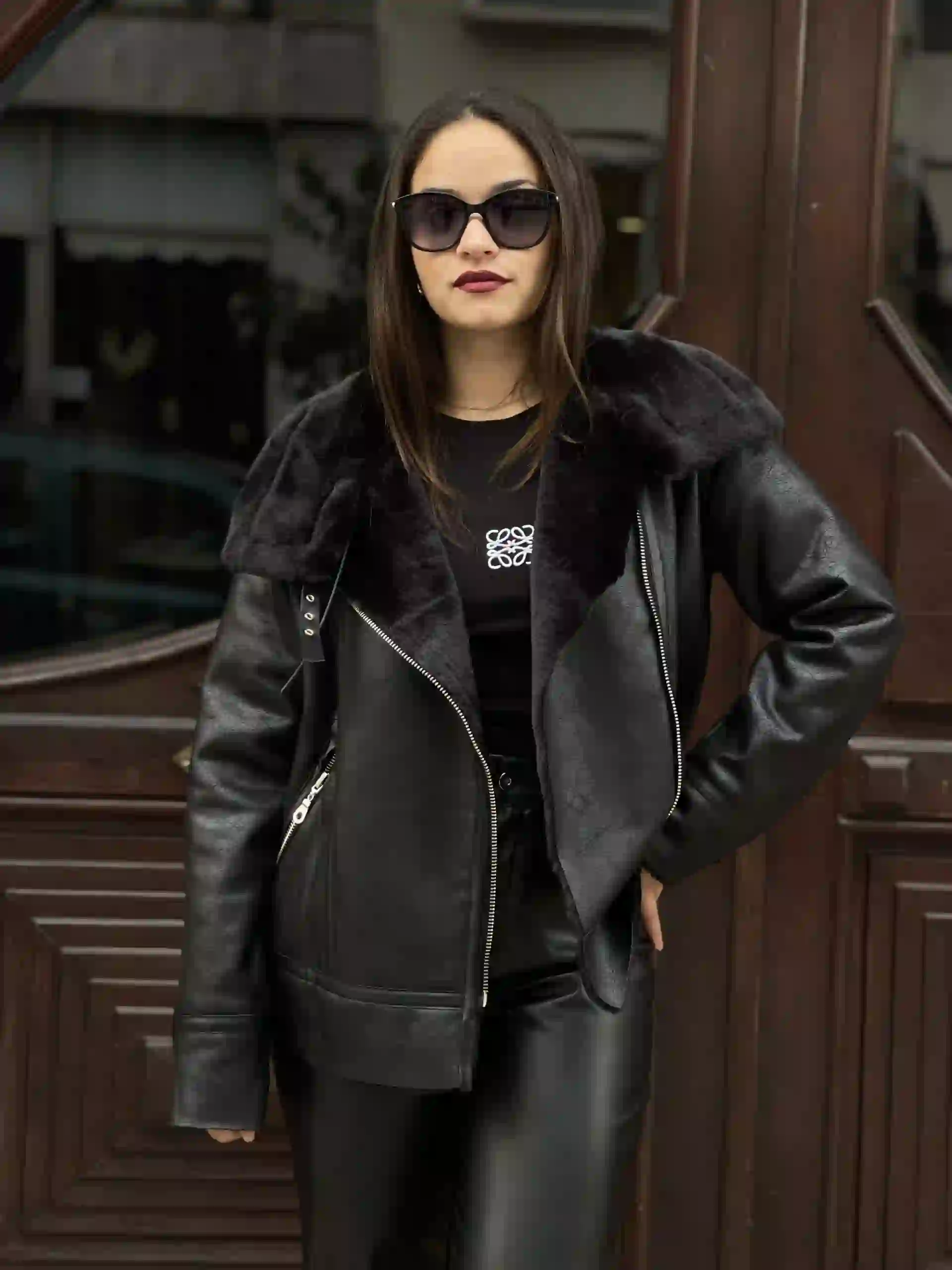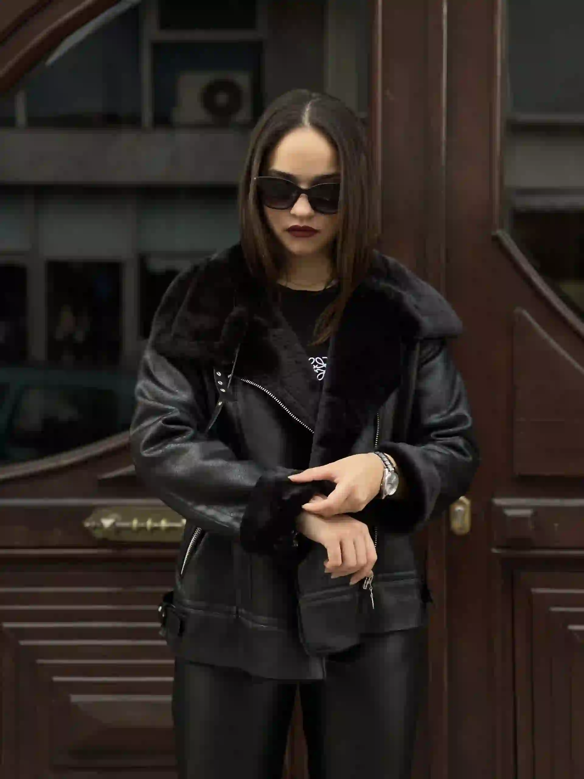 ◼️Δερμάτινη Ζακέτα Με Γούνινη Επένδυση/Μαύρο