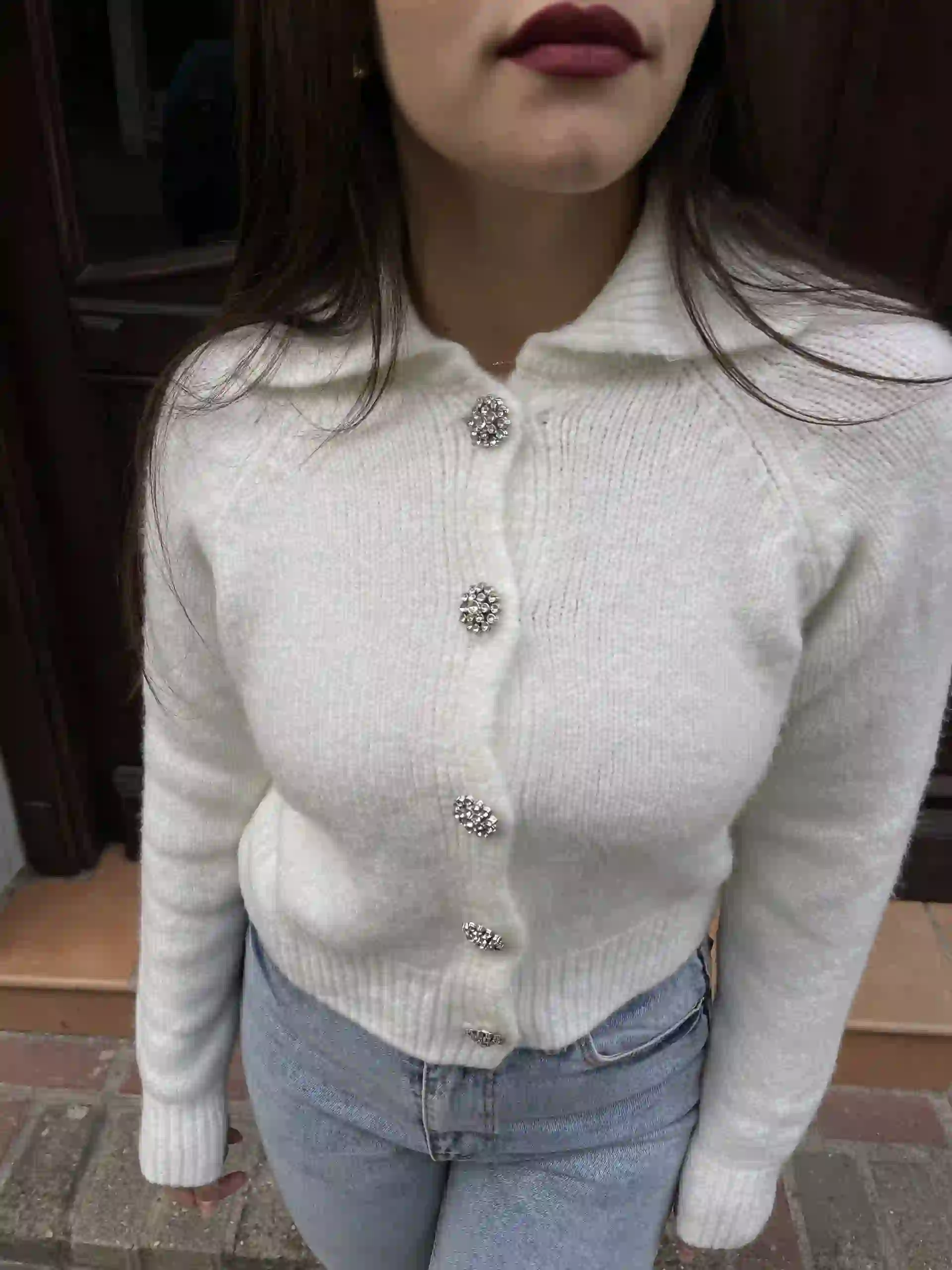 ◼️Πλεκτη Ζακέτα Με Στρας Κουμπιά/ Εκρού