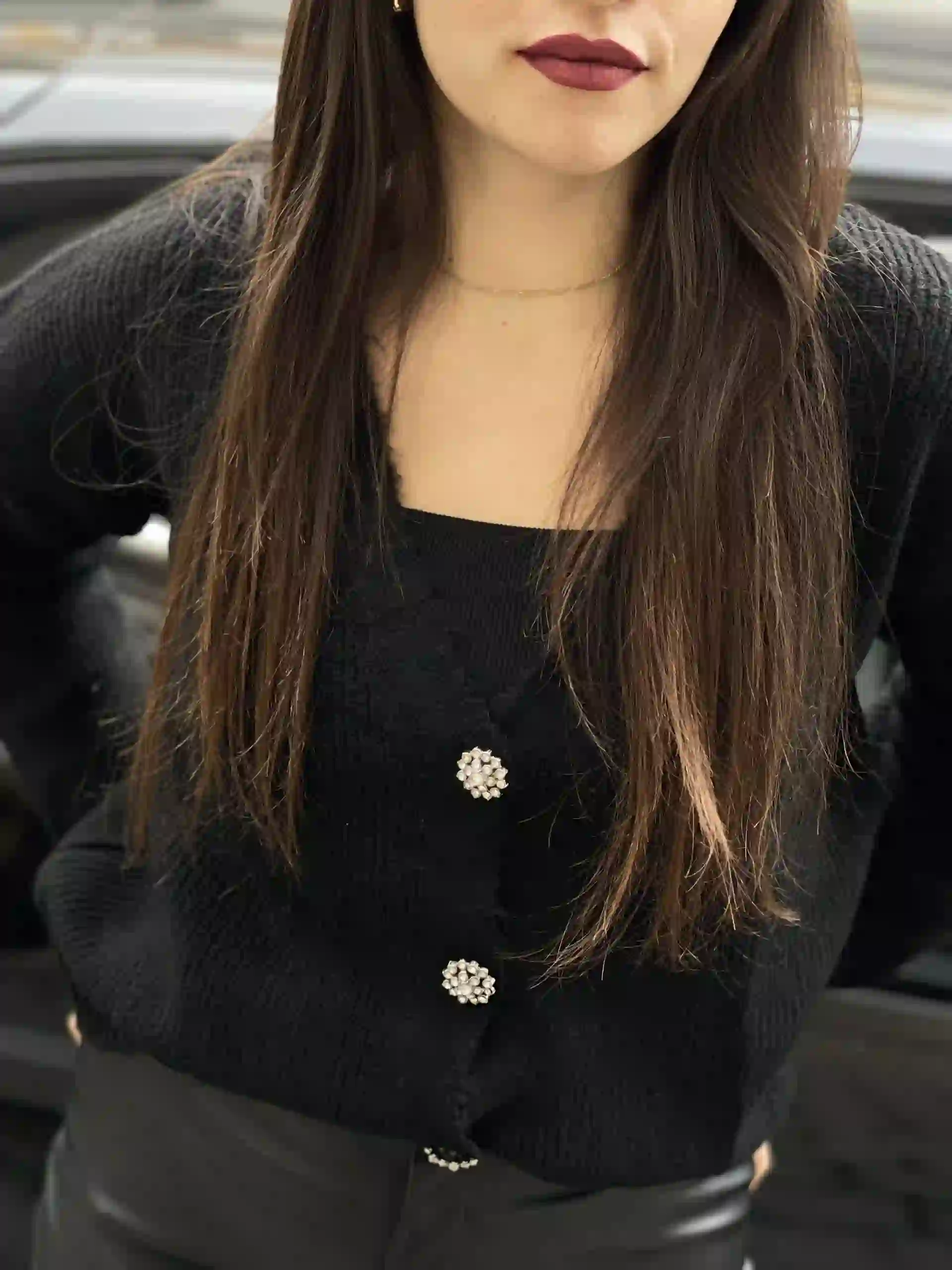 ◼️Πλεκτη Ζακετα Με Στρας Κουμπια / Μαύρο