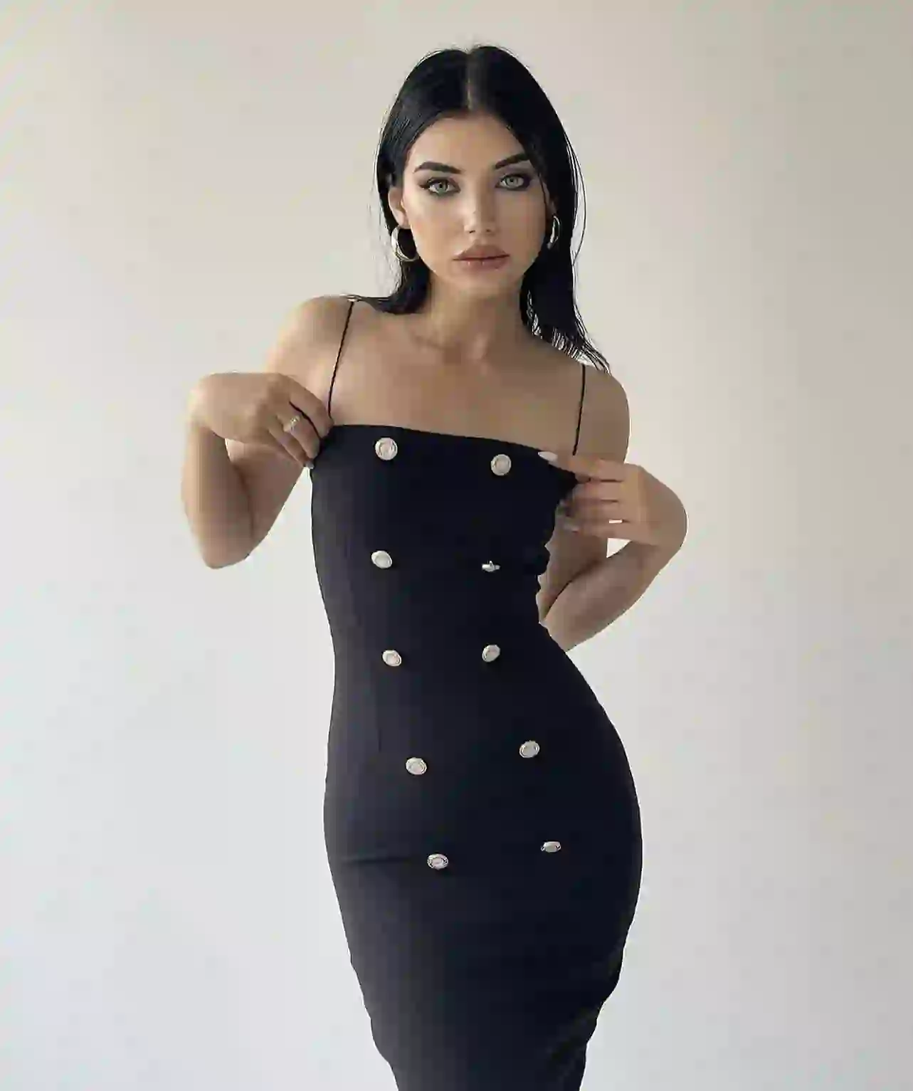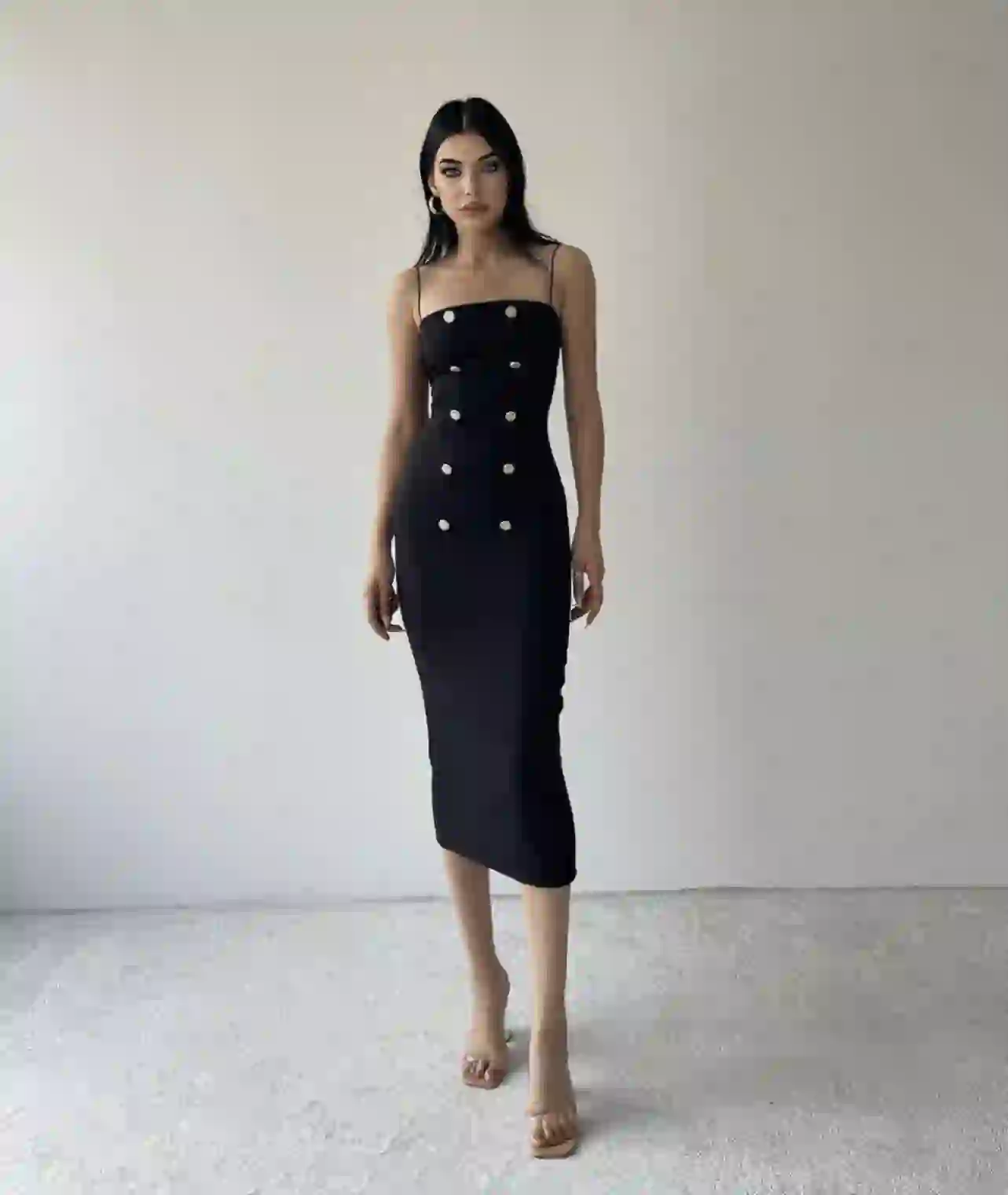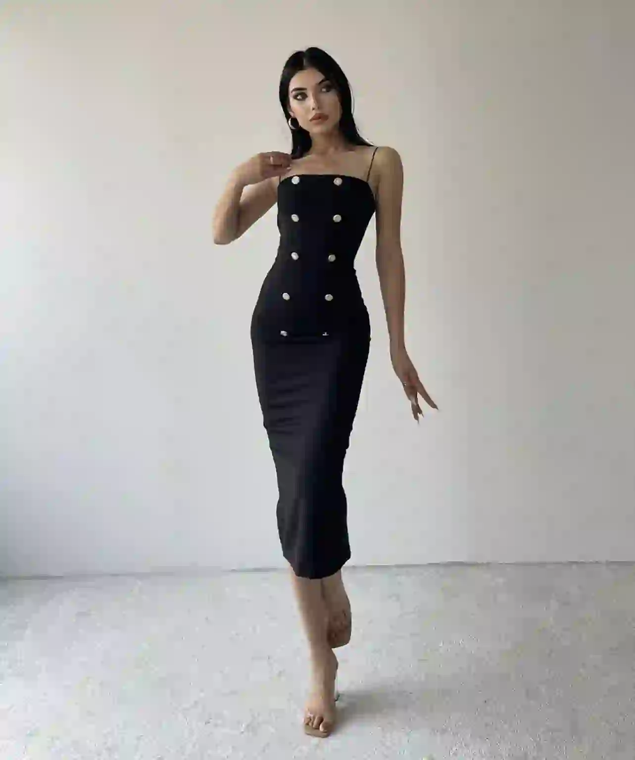 Black Midi φόρεμα με διακοσμητικά κουμπιά 🖤