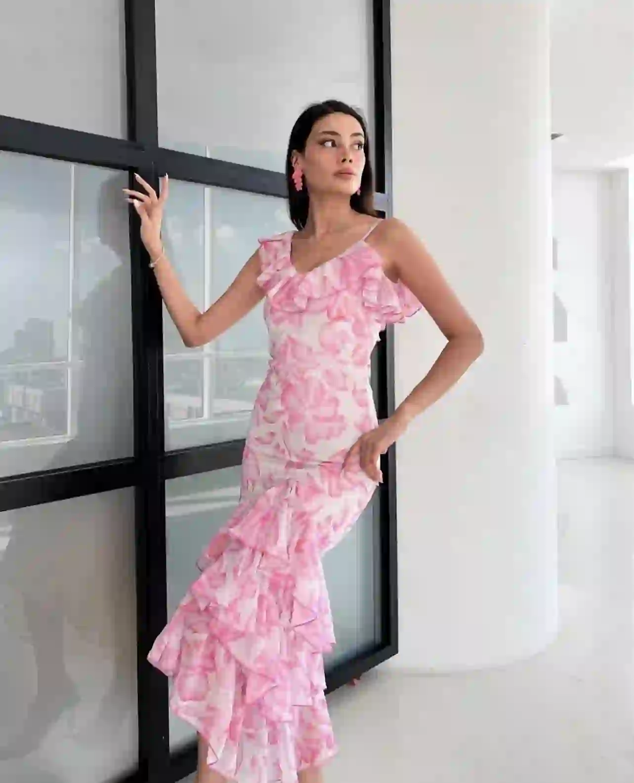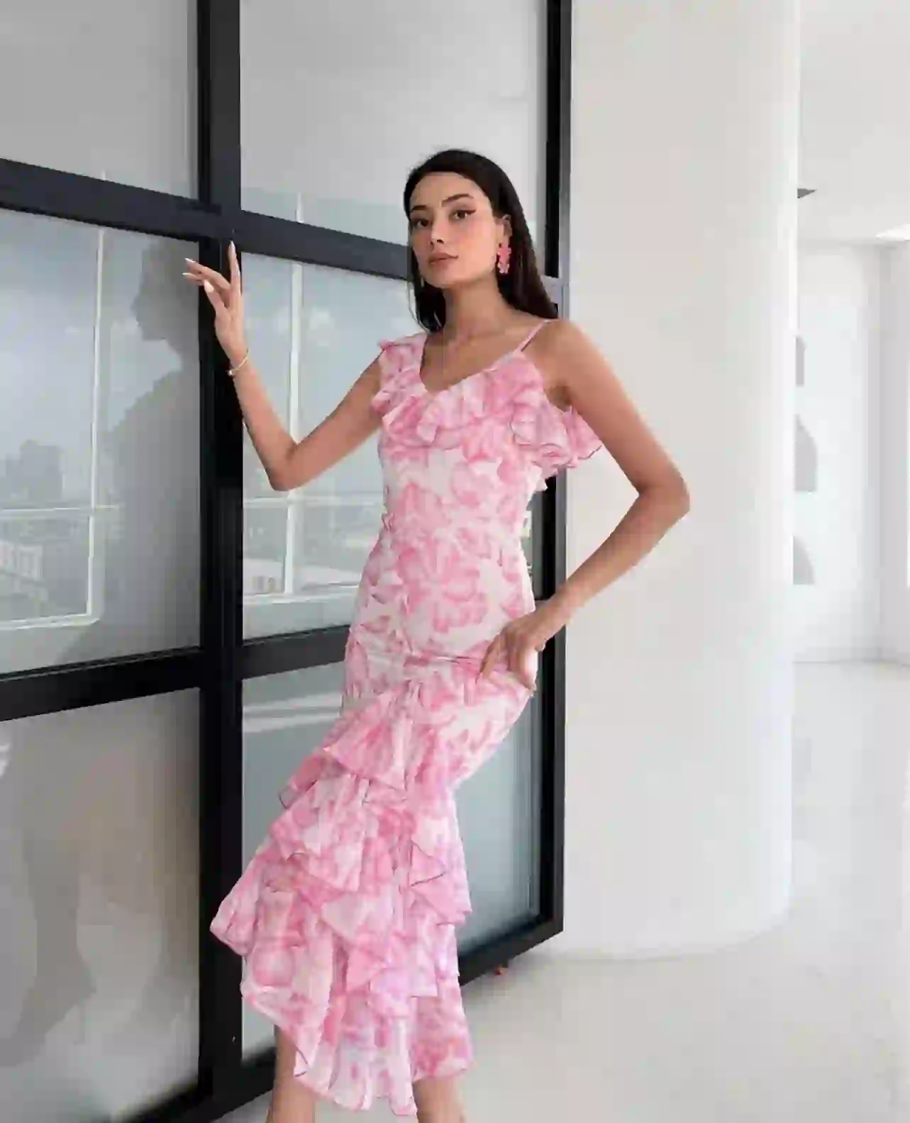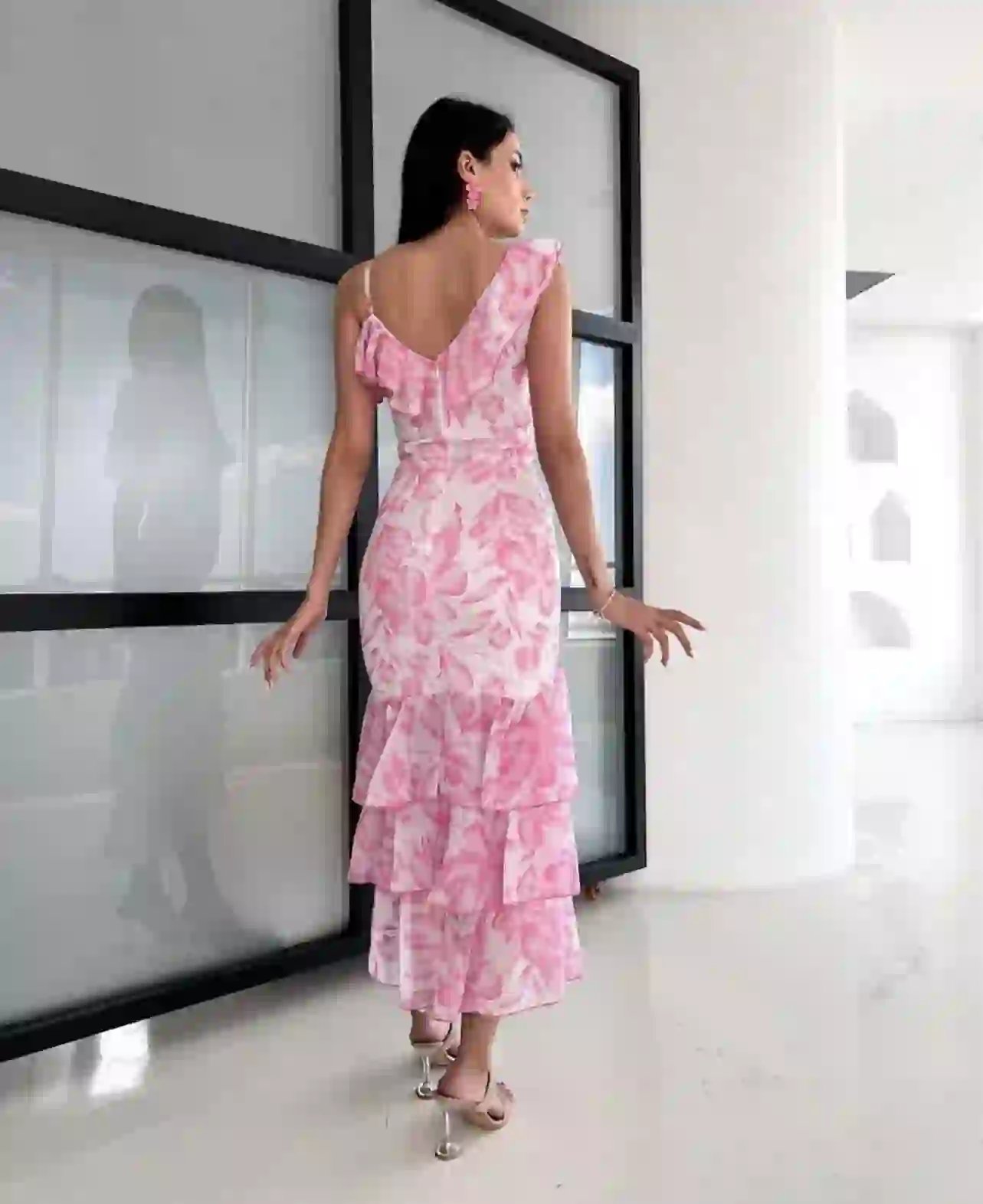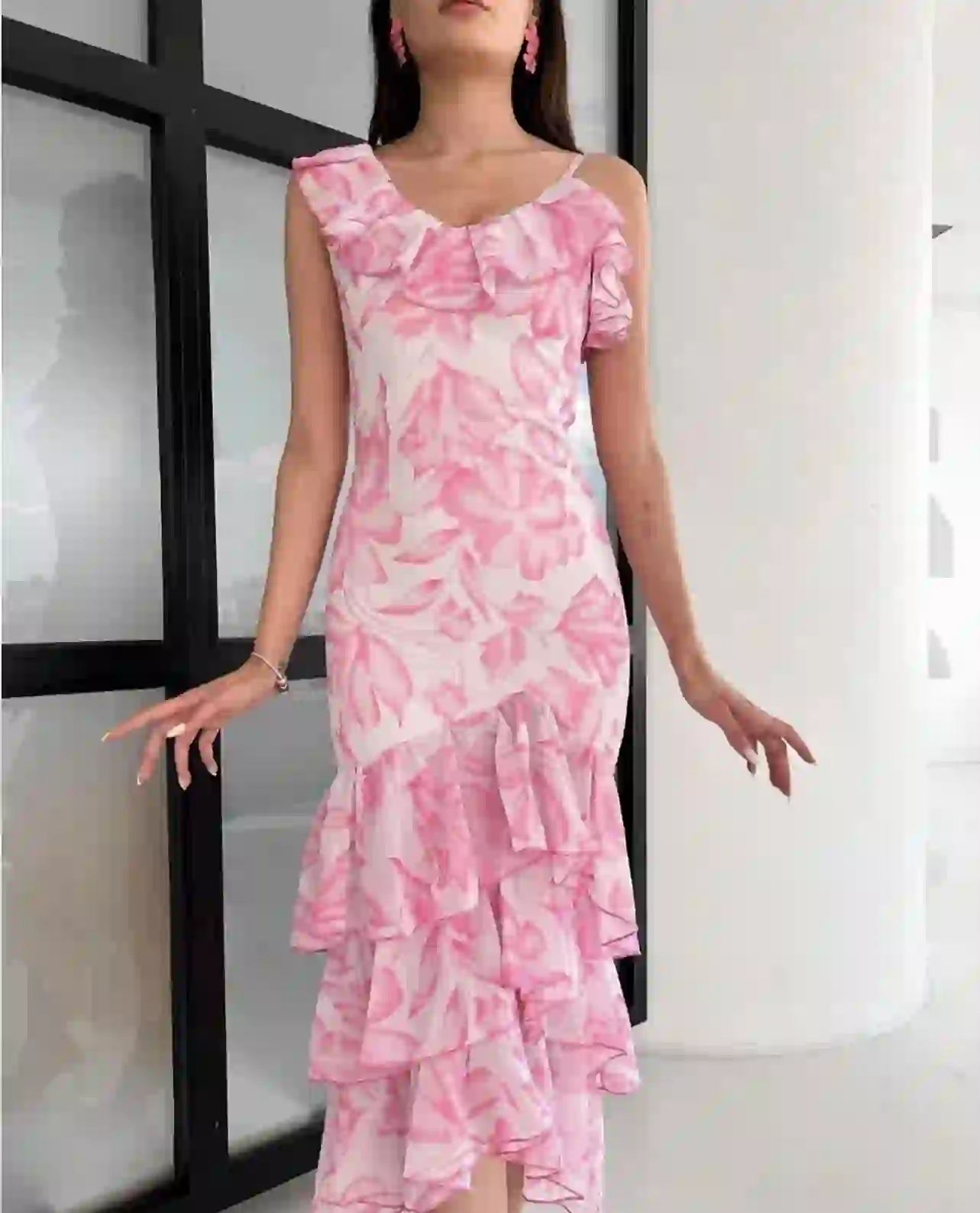 Floral Chiffon Φόρεμα με Ροζ Εμπριμέ 🌸