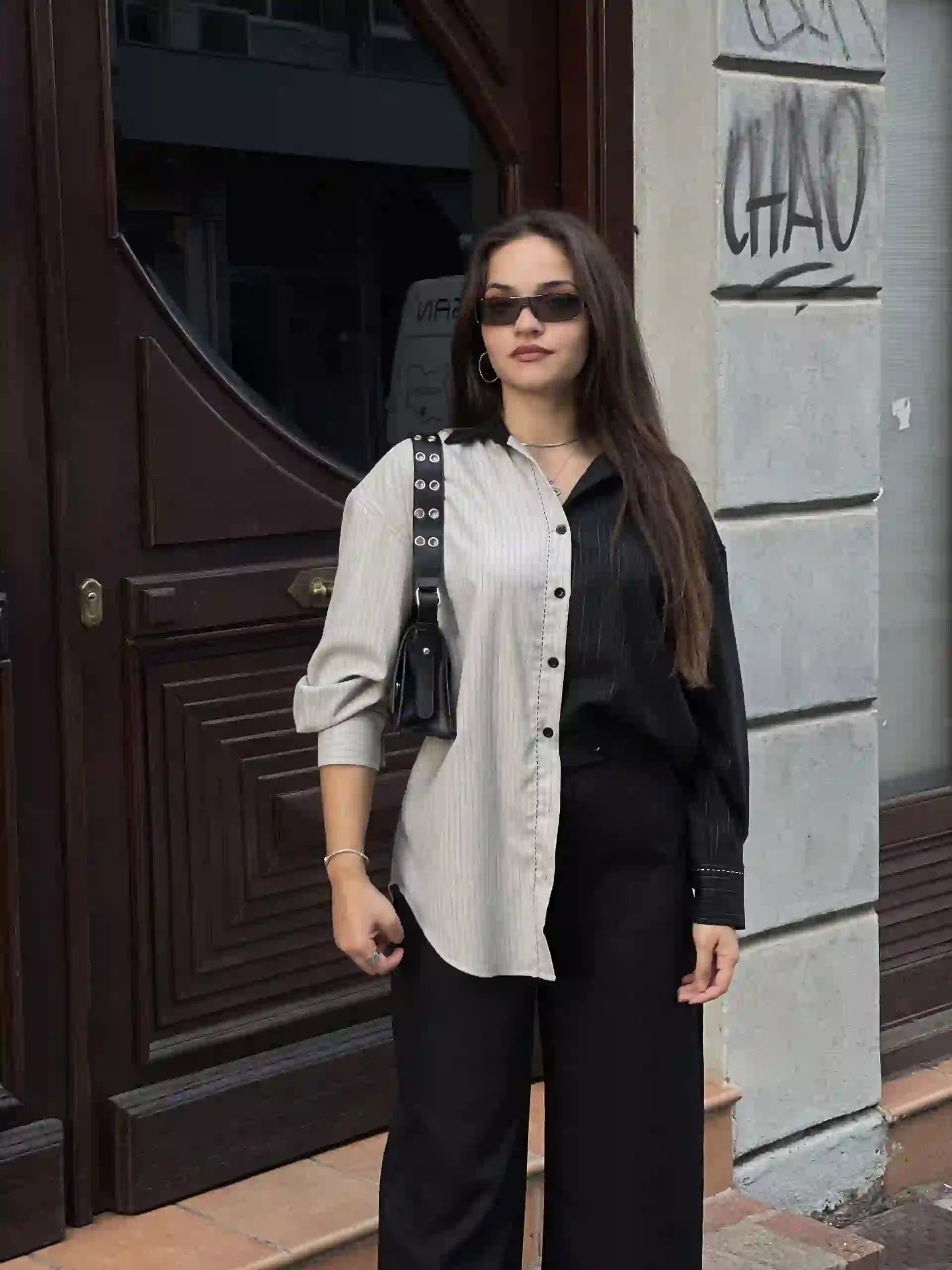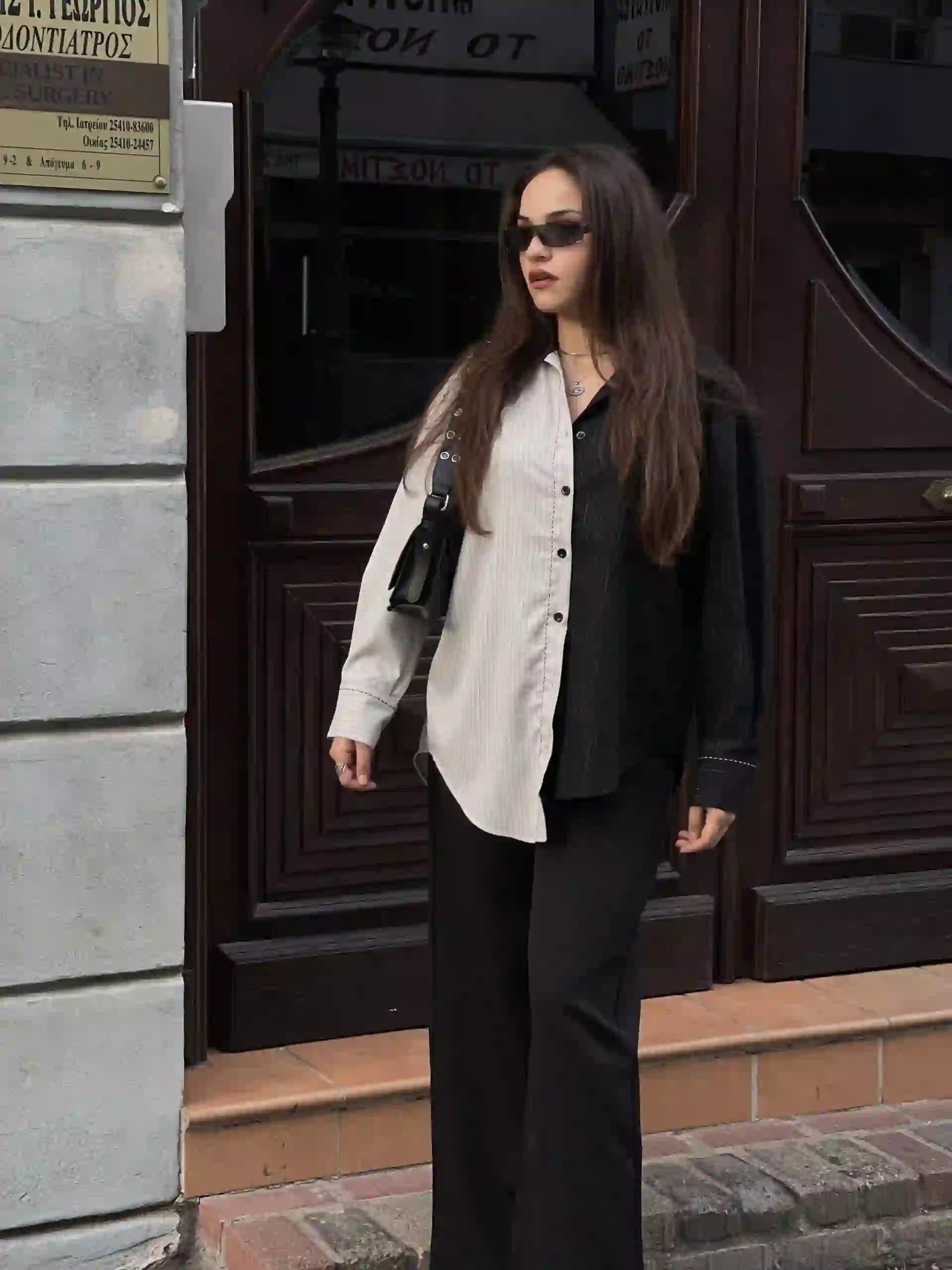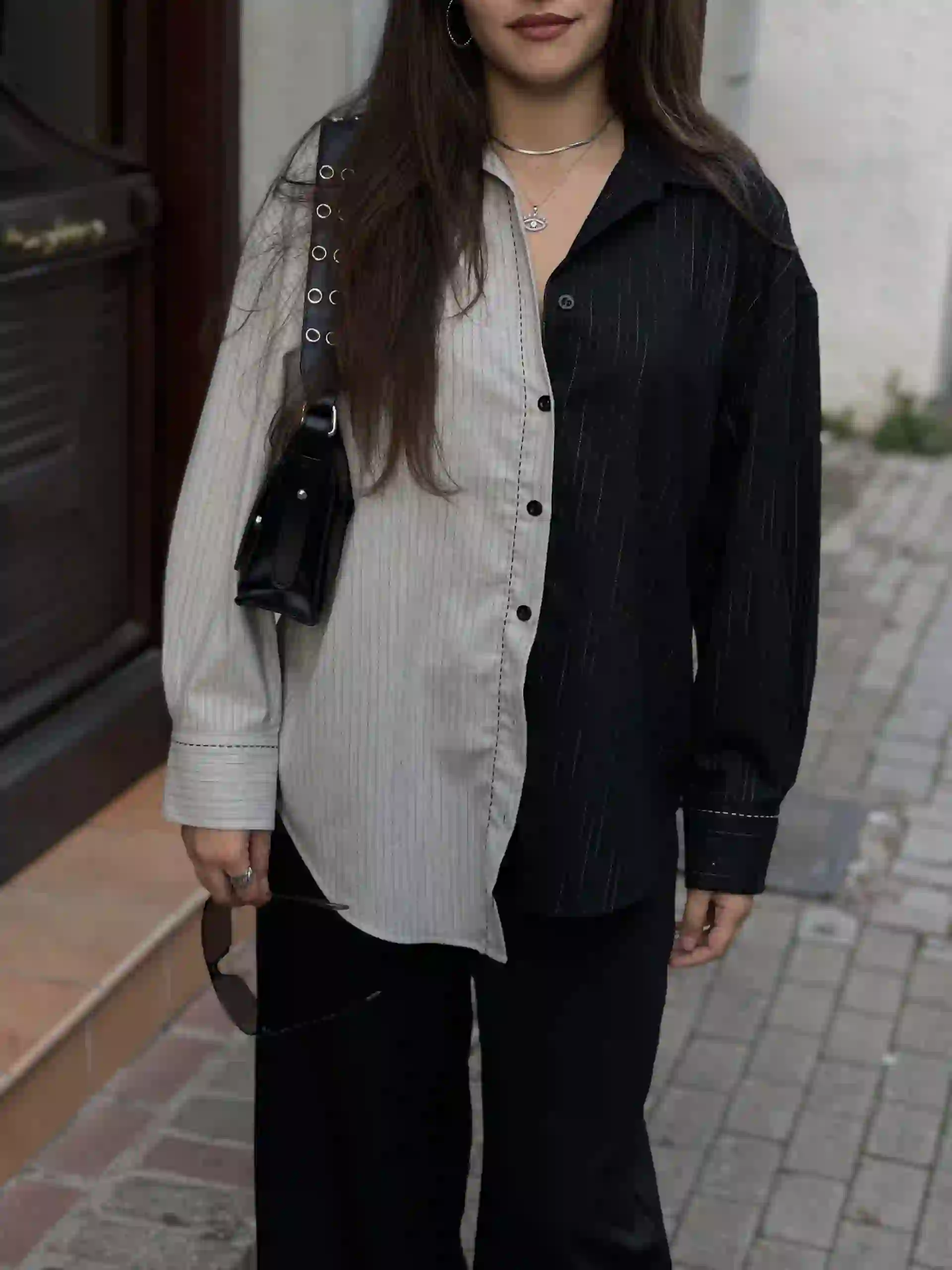 Masculine Δίχρωμο Oversize Πουκάμισο Ριγέ