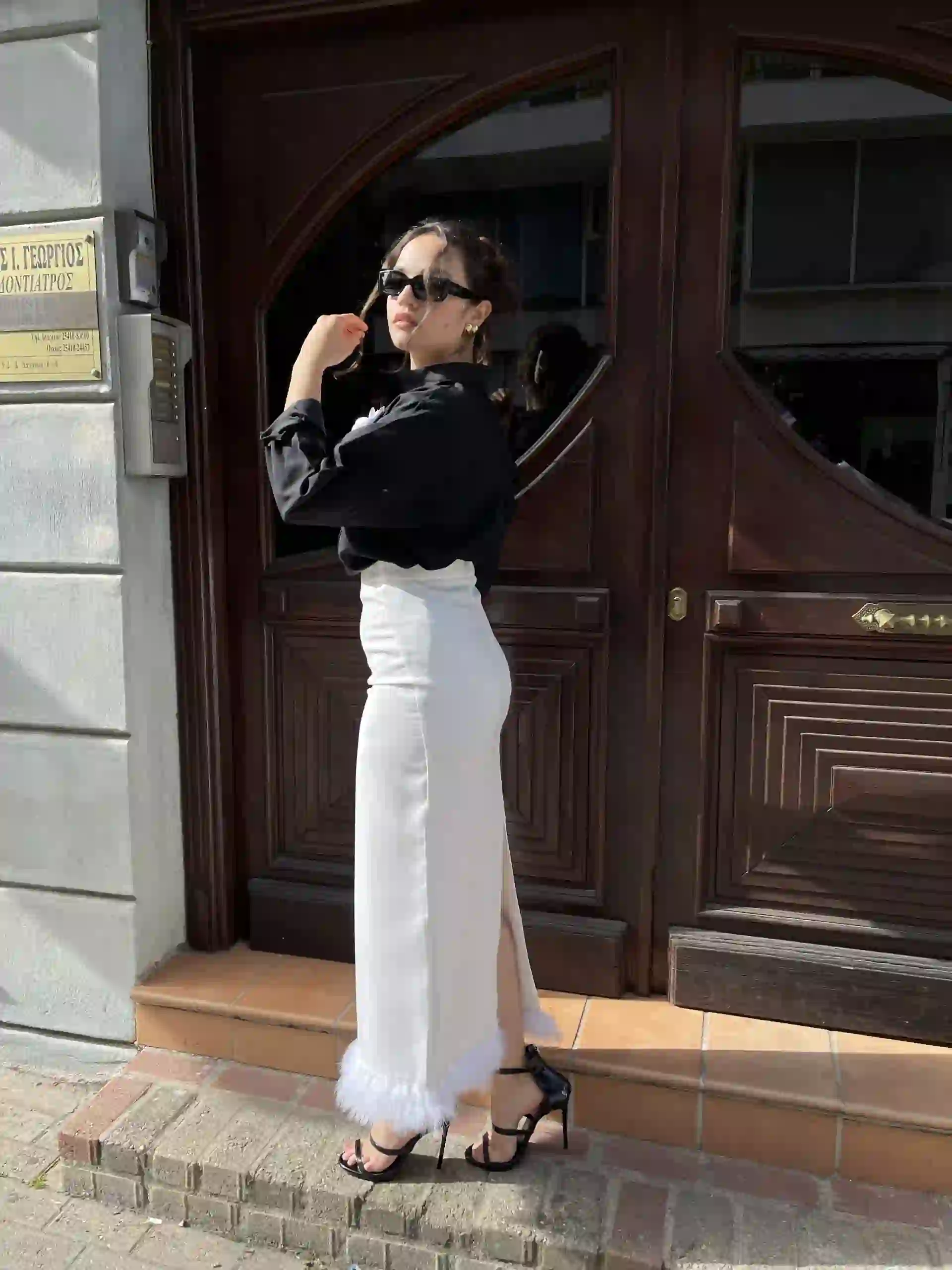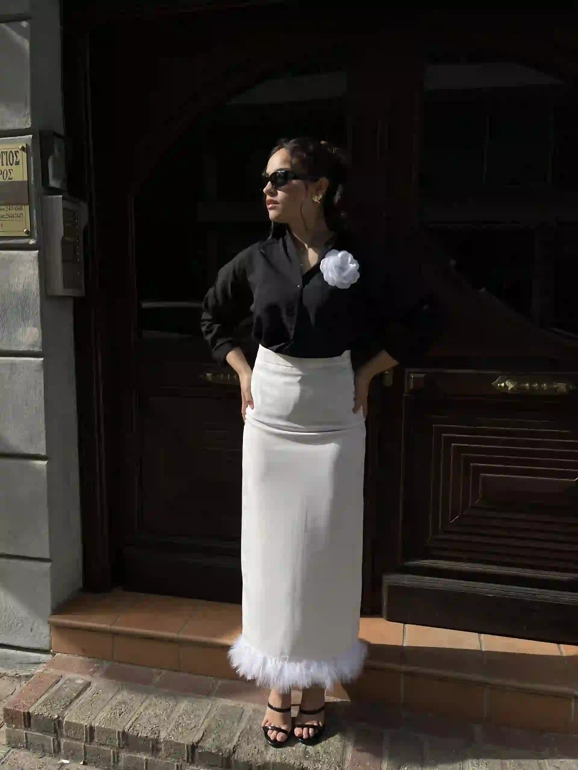 Maxi Pencil Φουστα Με Πούπουλα / Λευκό