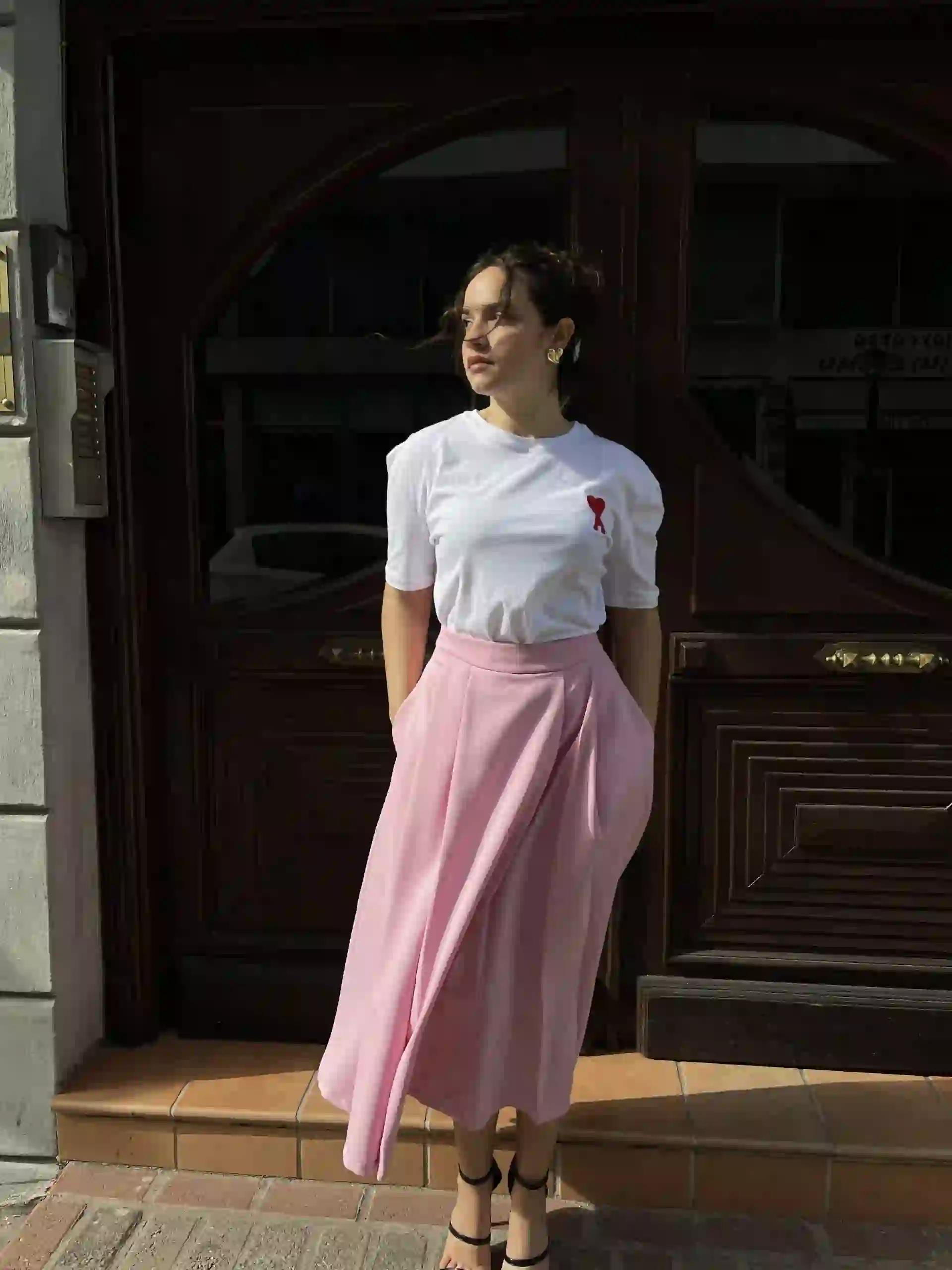 Μιντι Φουστα Με Πιέτες/ Ροζ
