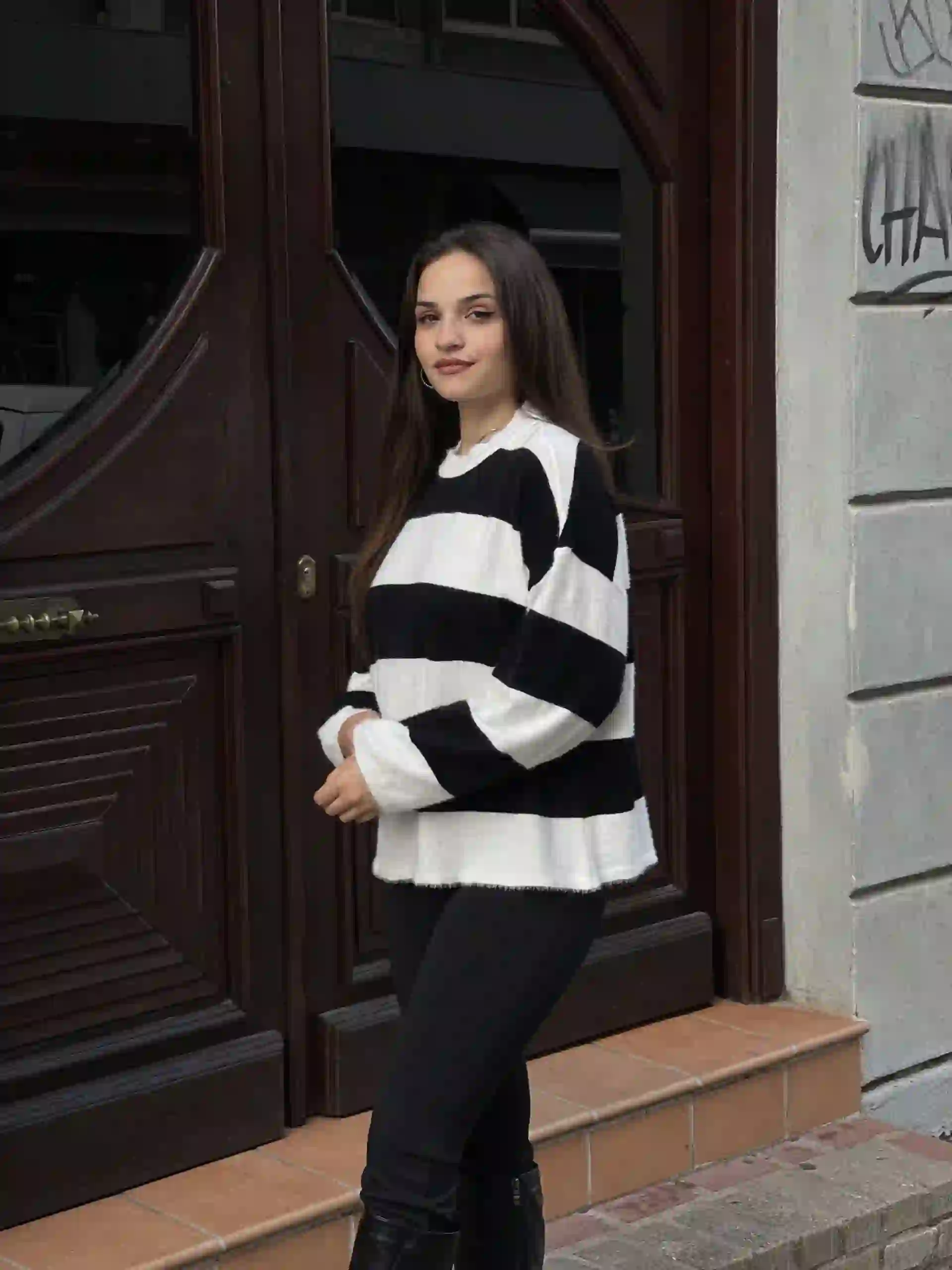 Πλεκτή Χνουδωτή Μπλούζα / Ασπρόμαυρο