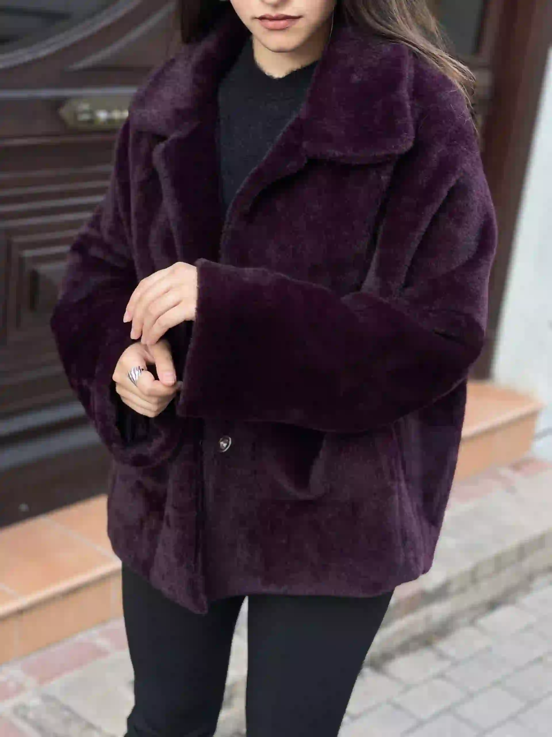 Premium Fur Coat Oversize / Wine