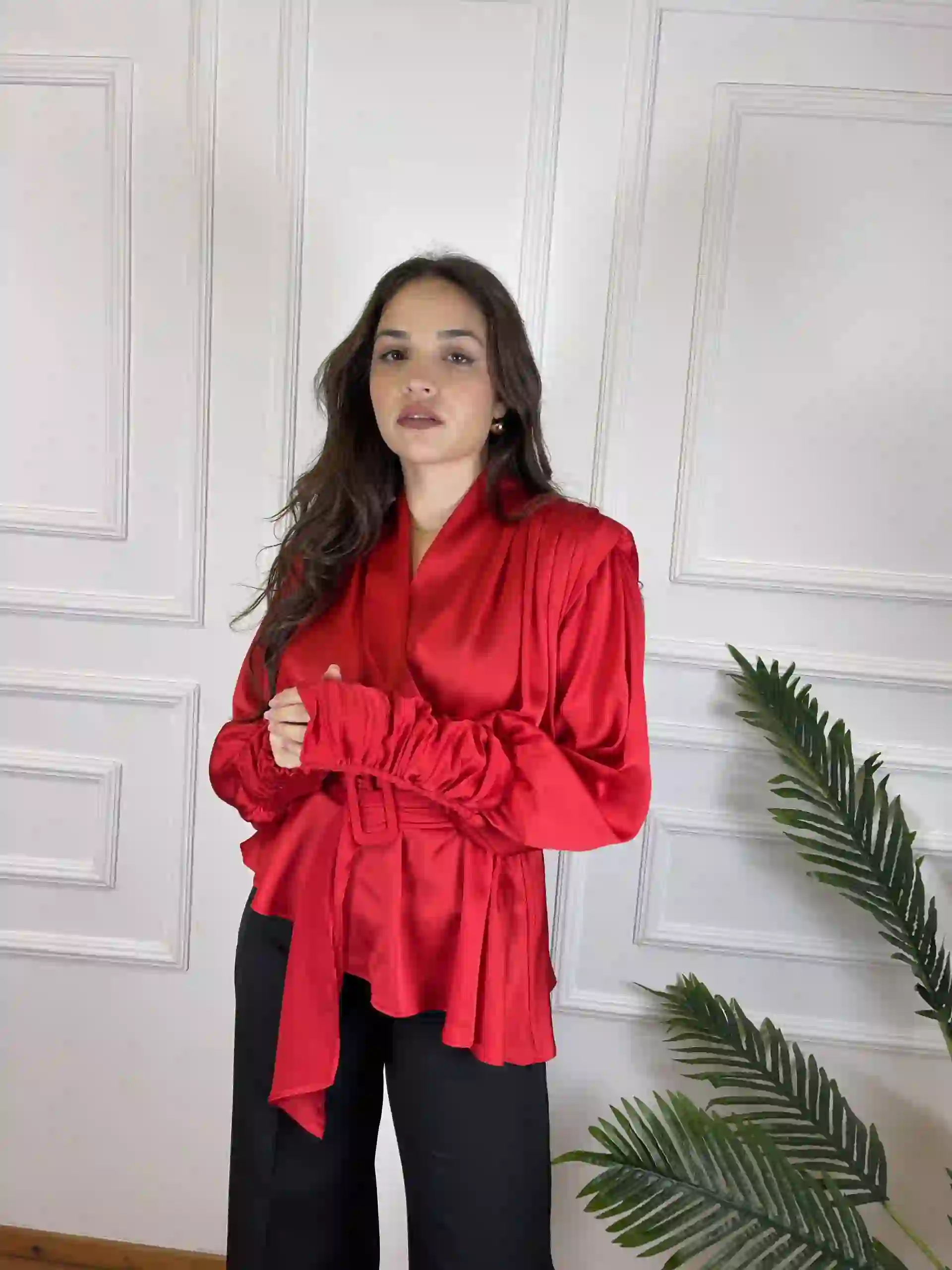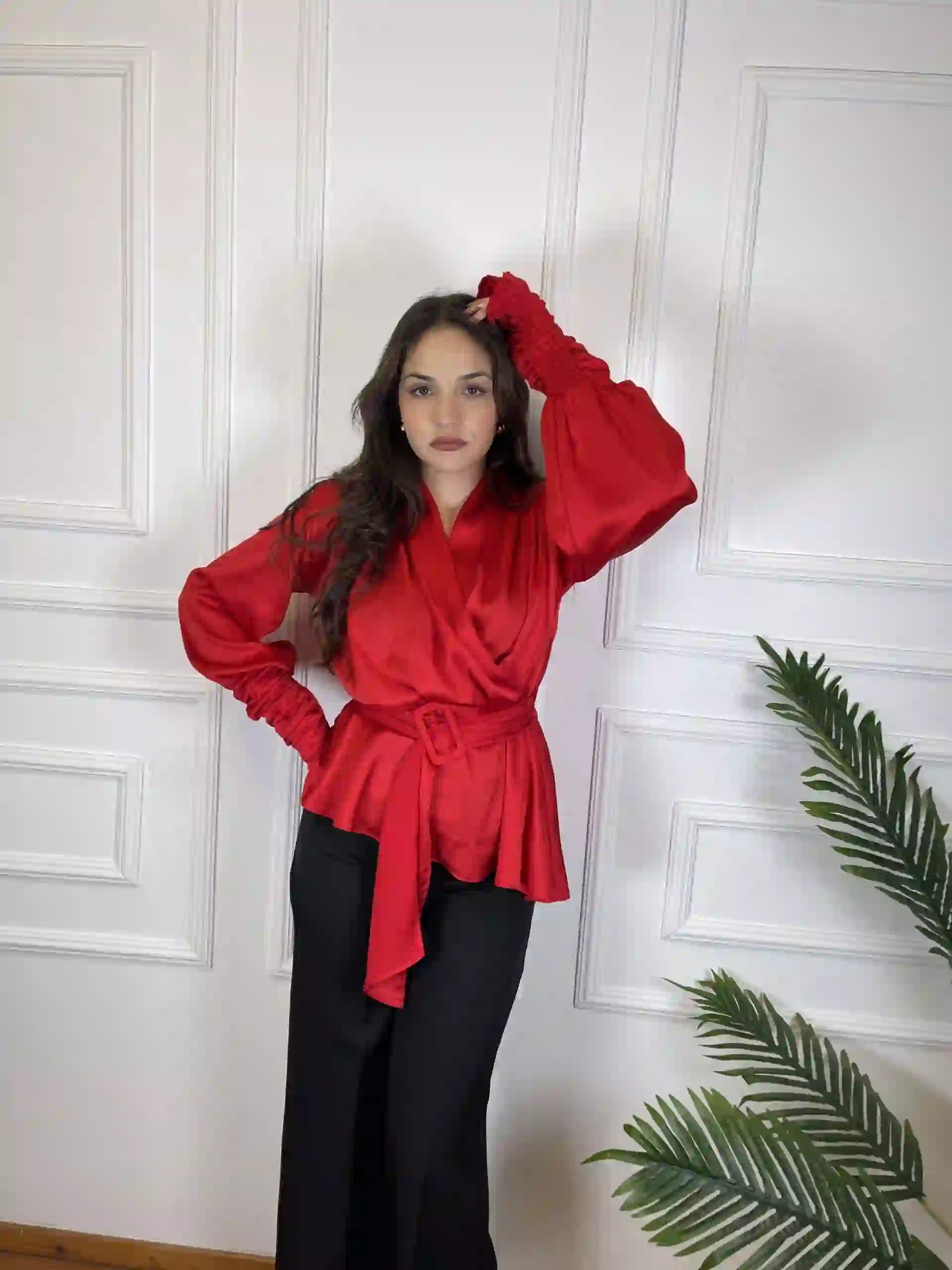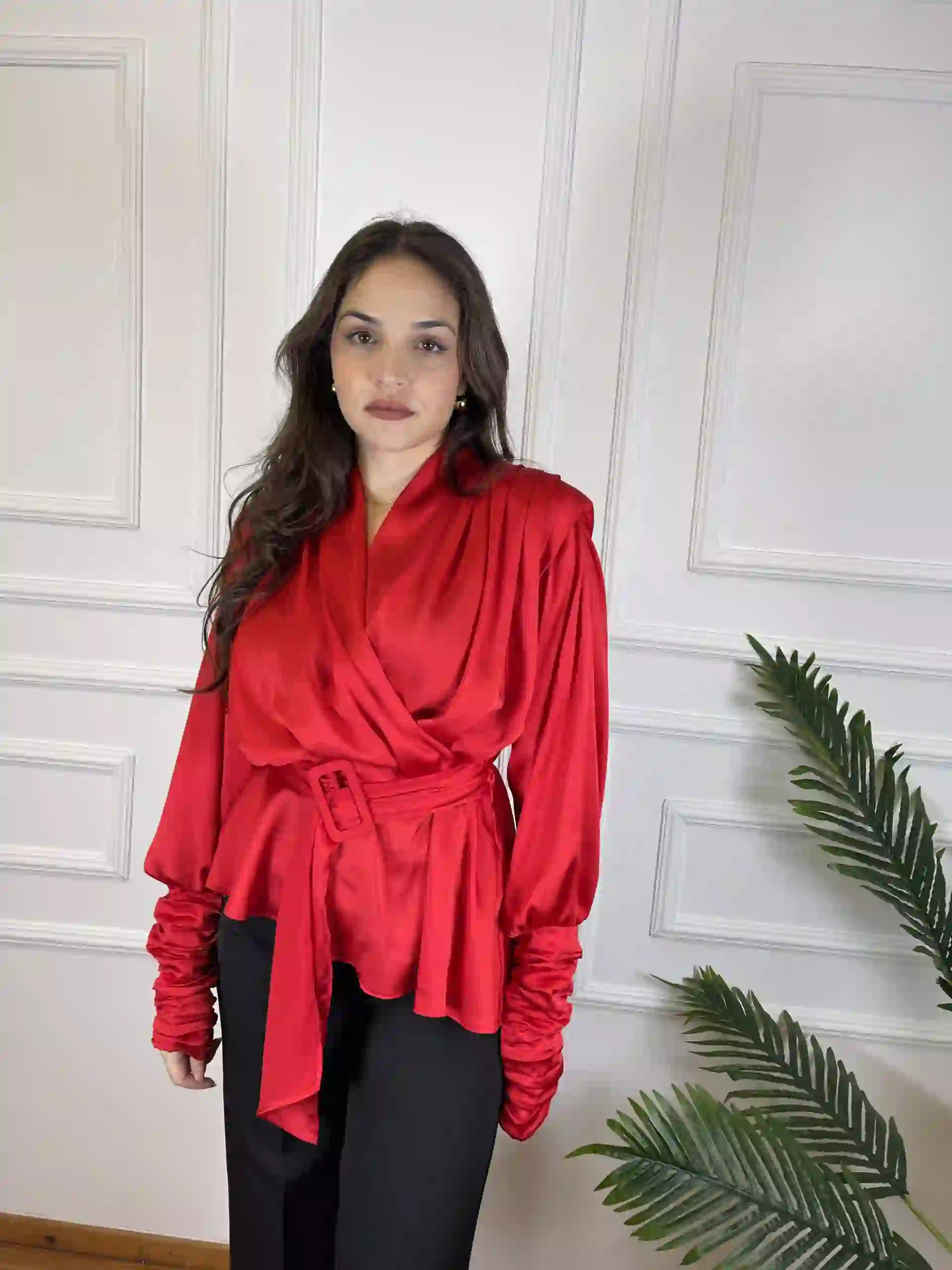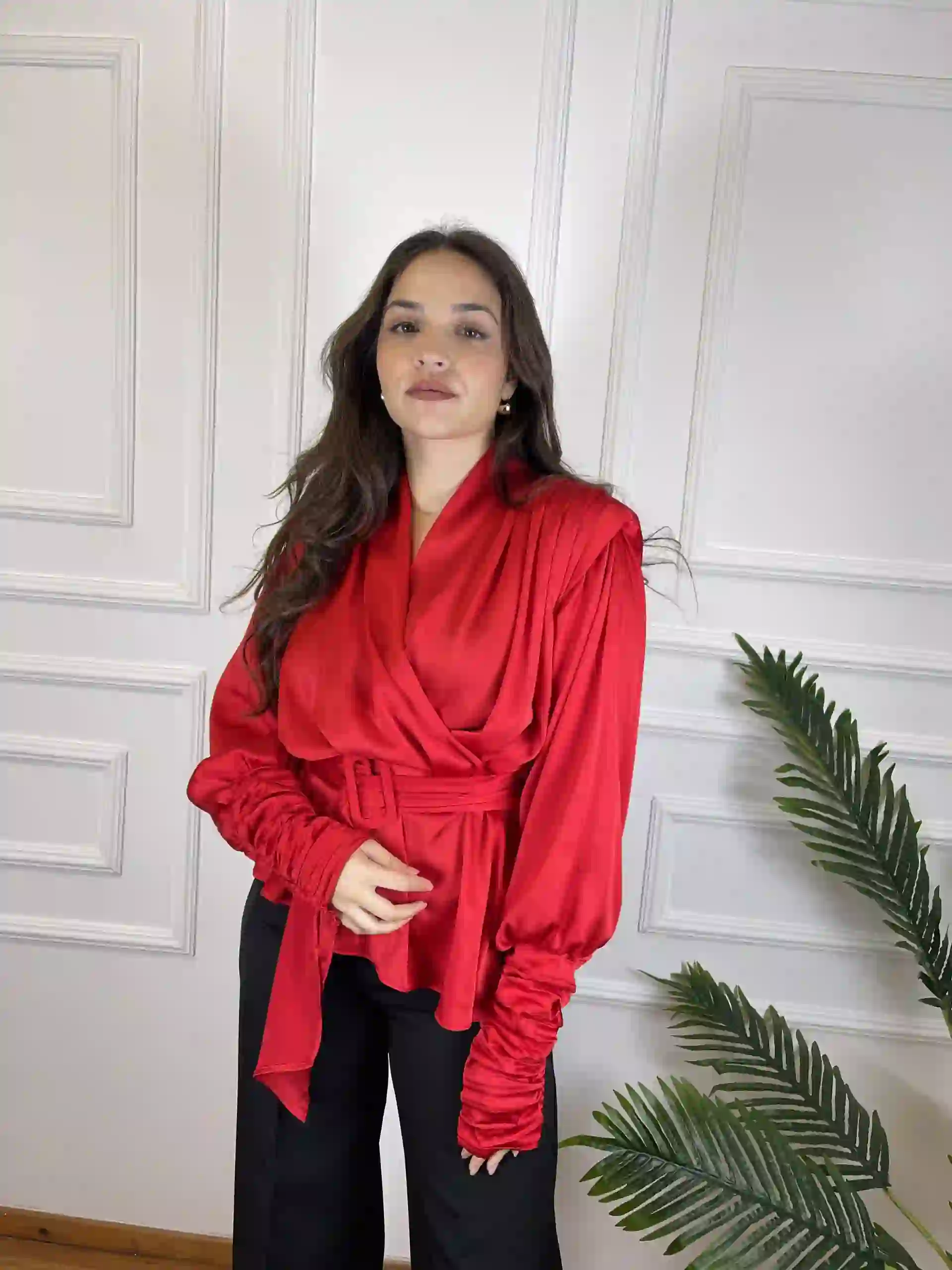 Σατέν Κρουαζε Μπλουζα Με Βατές / Κόκκινο