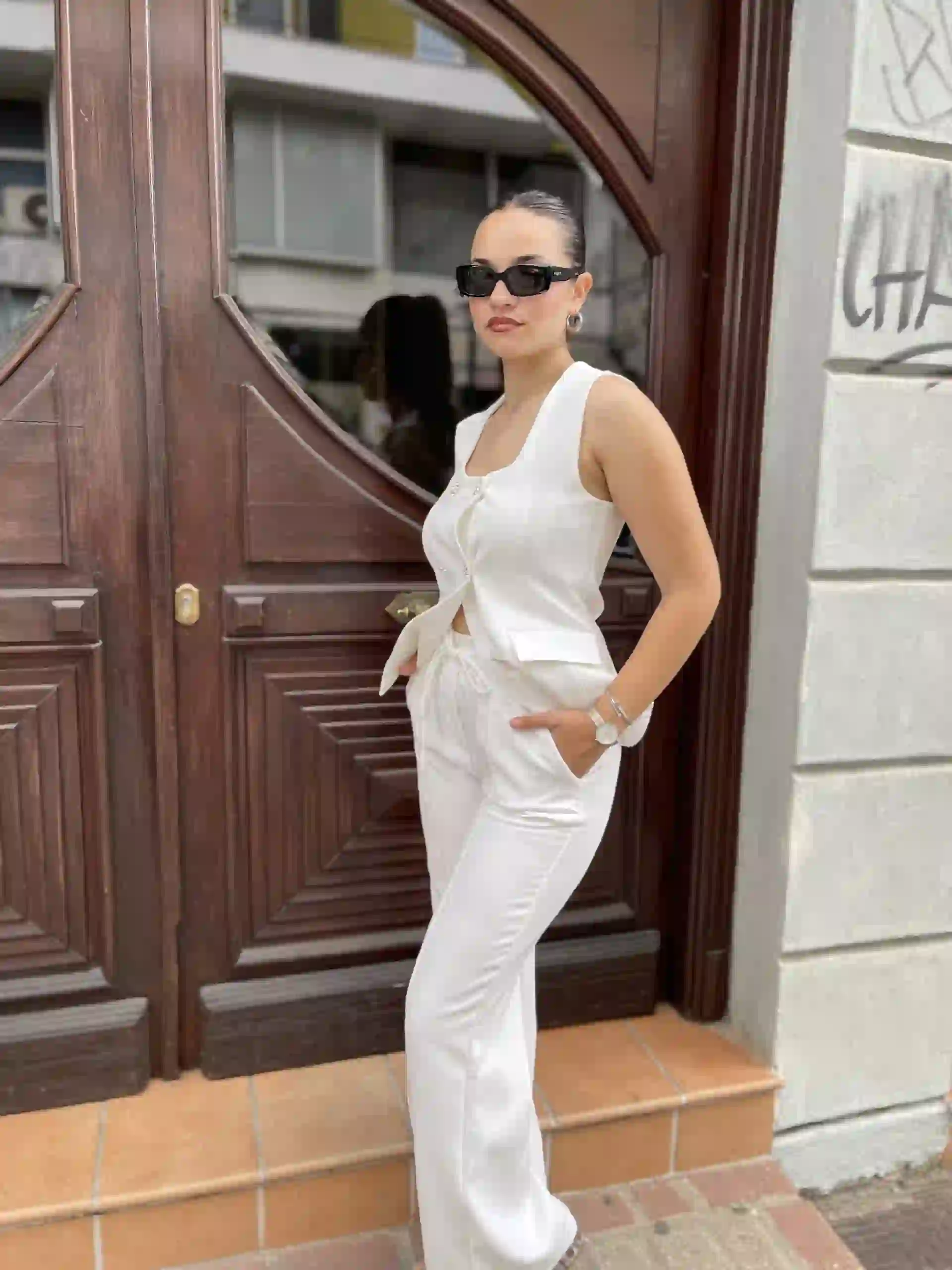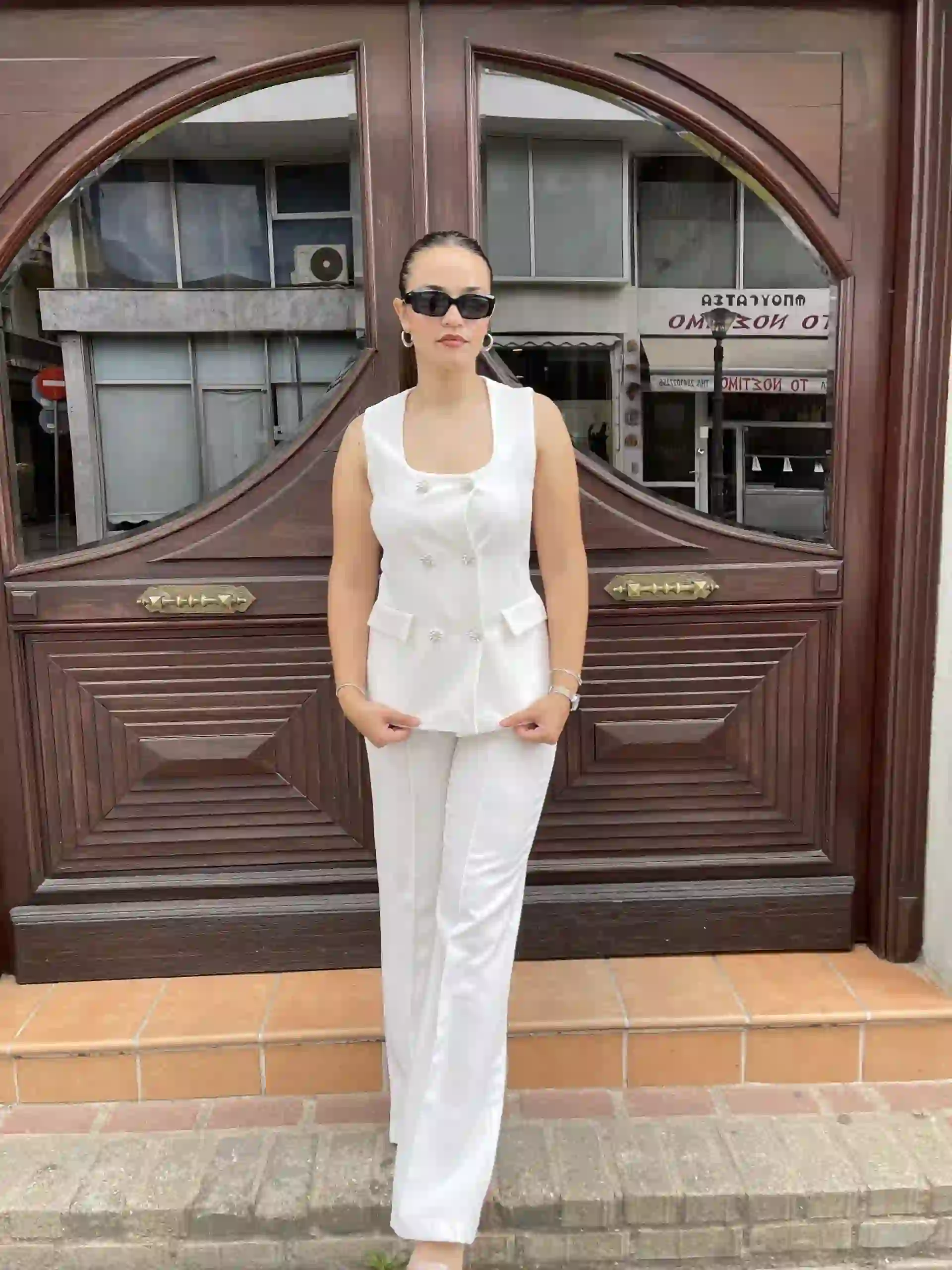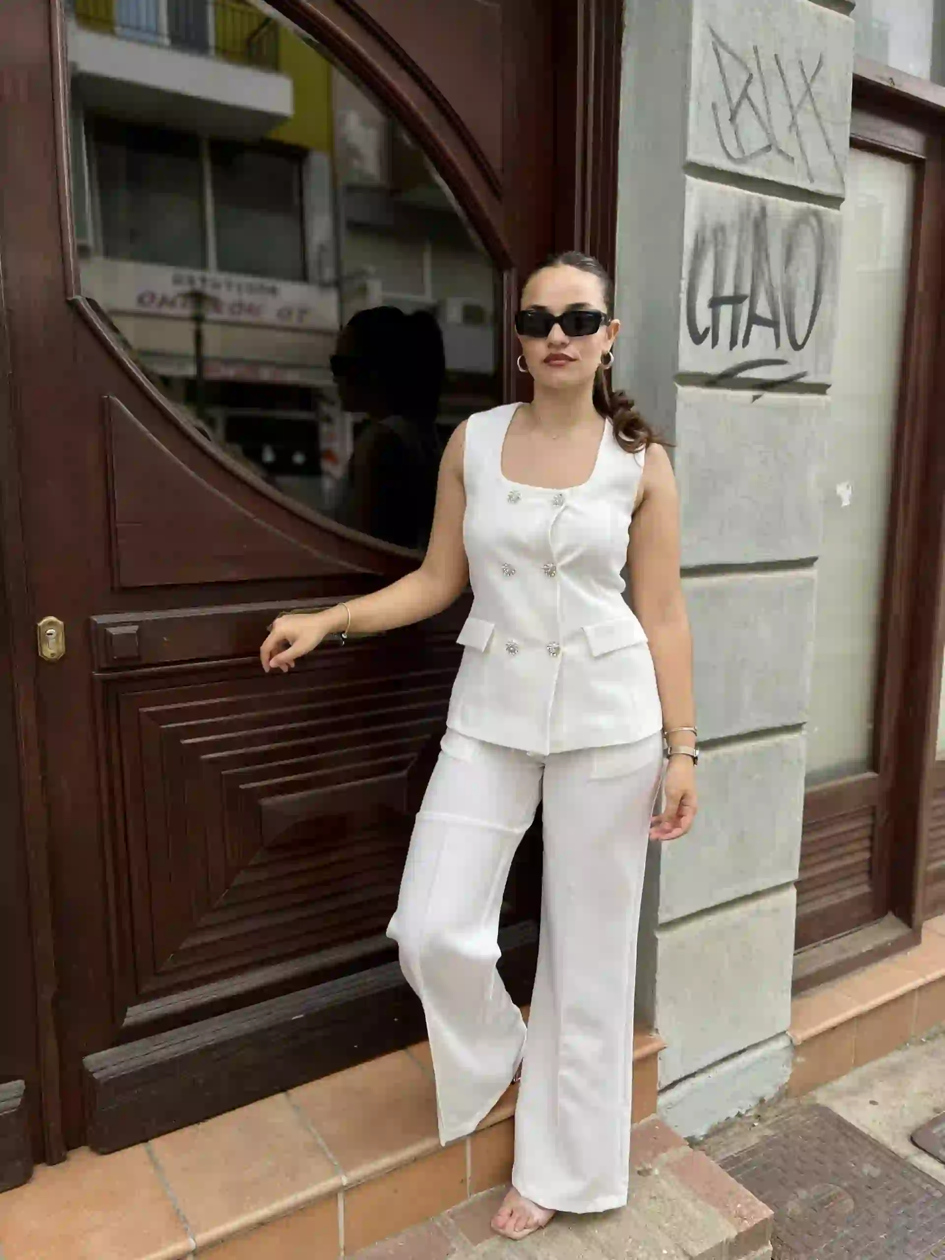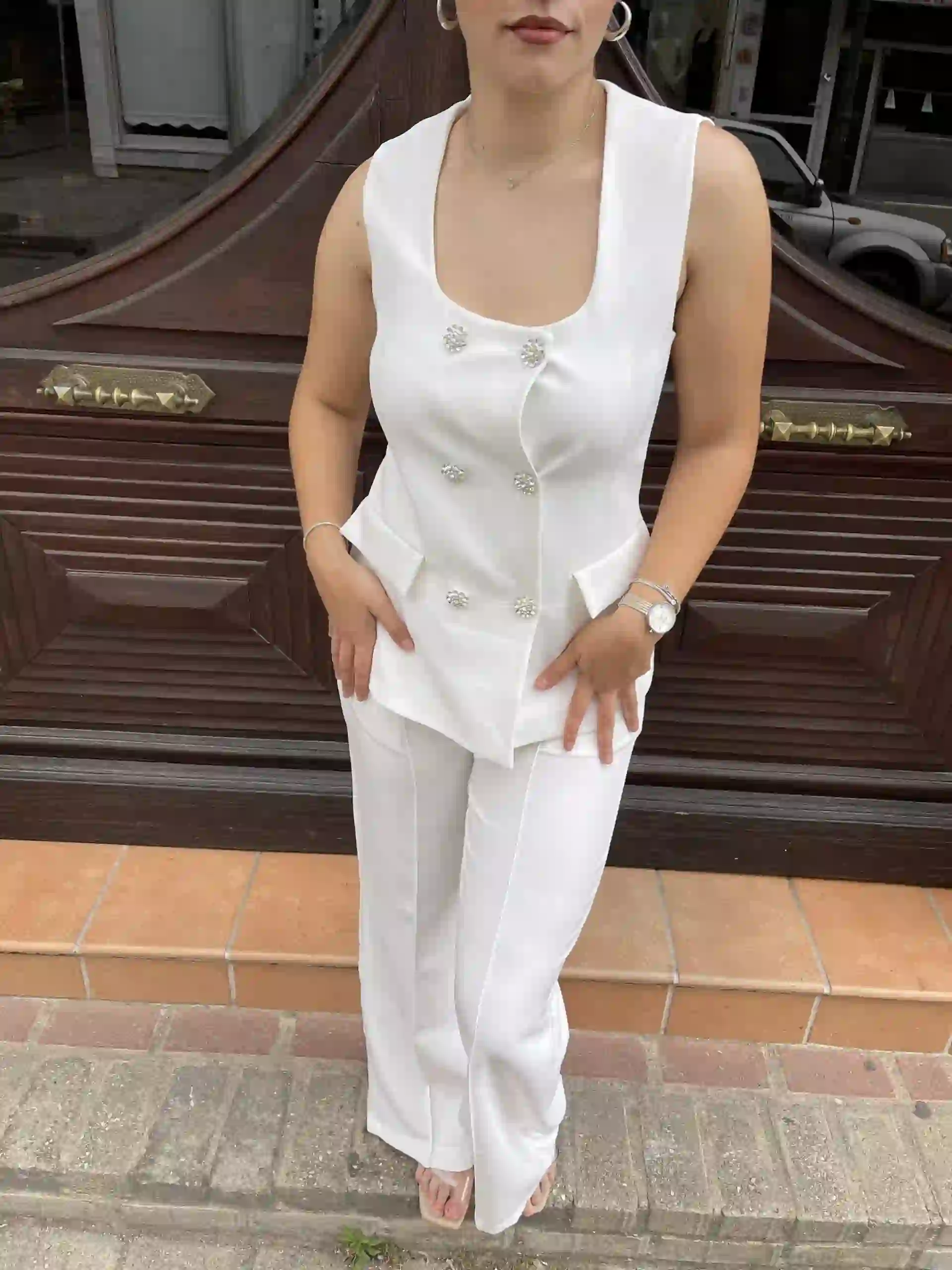 Σετ Γιλέκο Με Στρας Κουμπια/ Λευκό