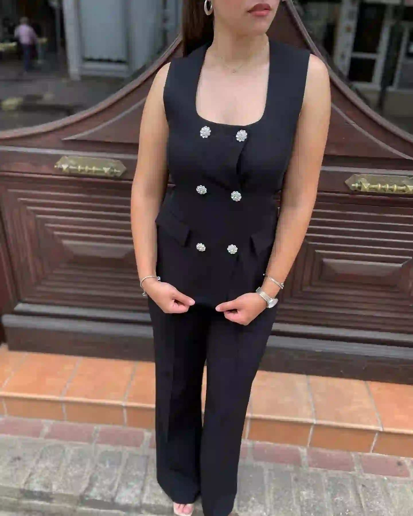 Σετ Γιλέκο Με Στρας Κουμπια / Μαυρο