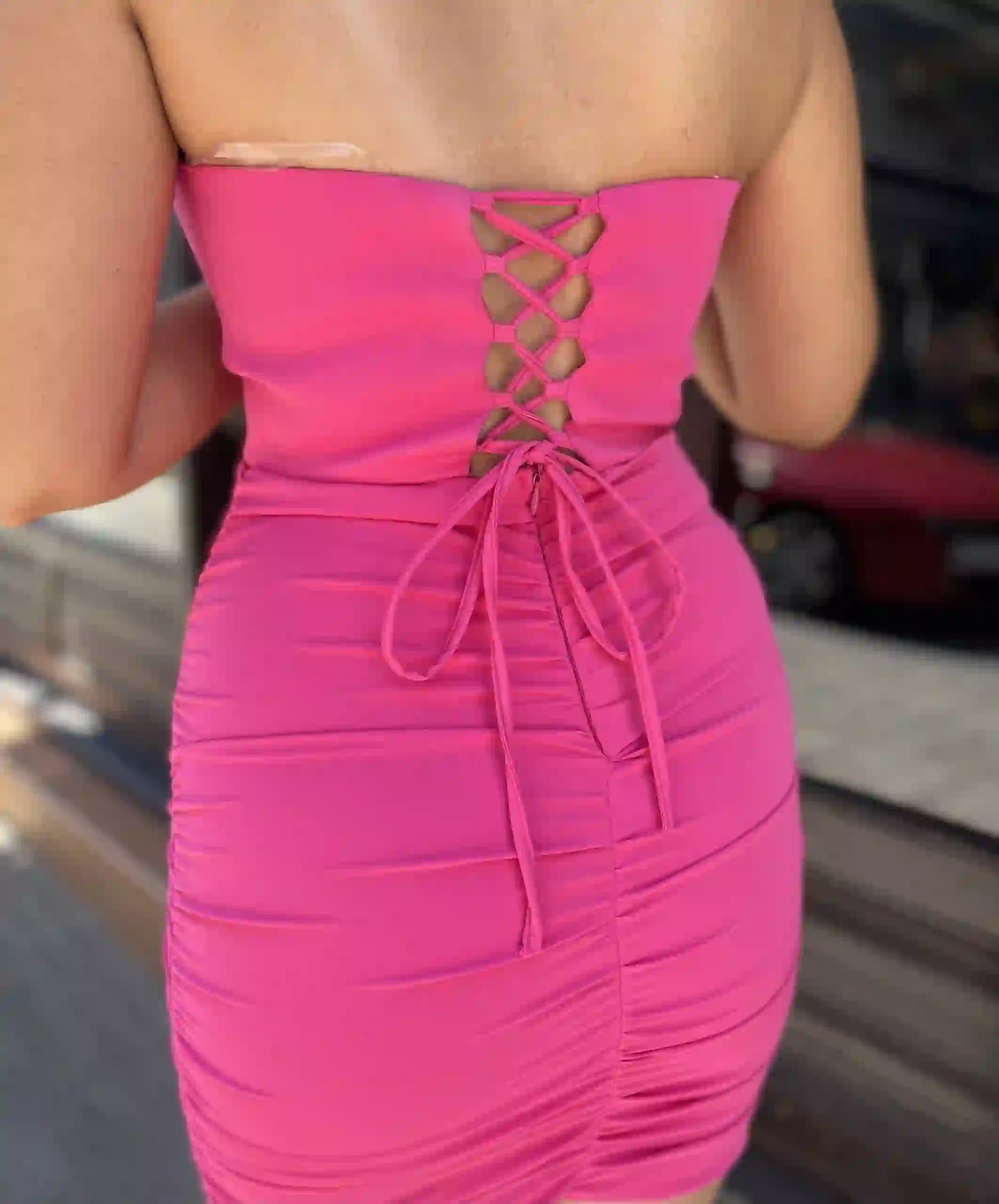 Στραπλες Φόρεμα Με Αποσπώμενο Φιόγκο / Φουξ 💥