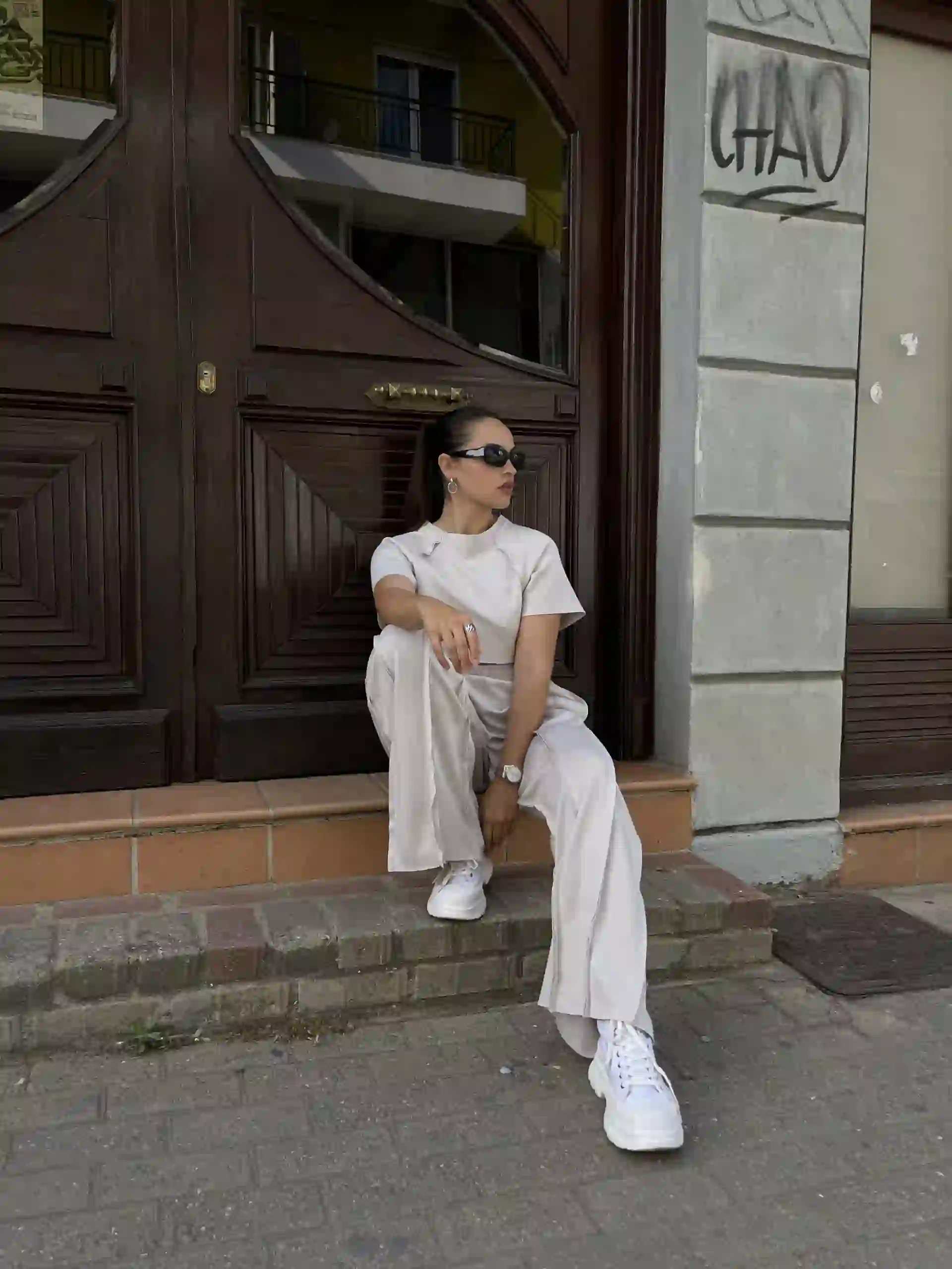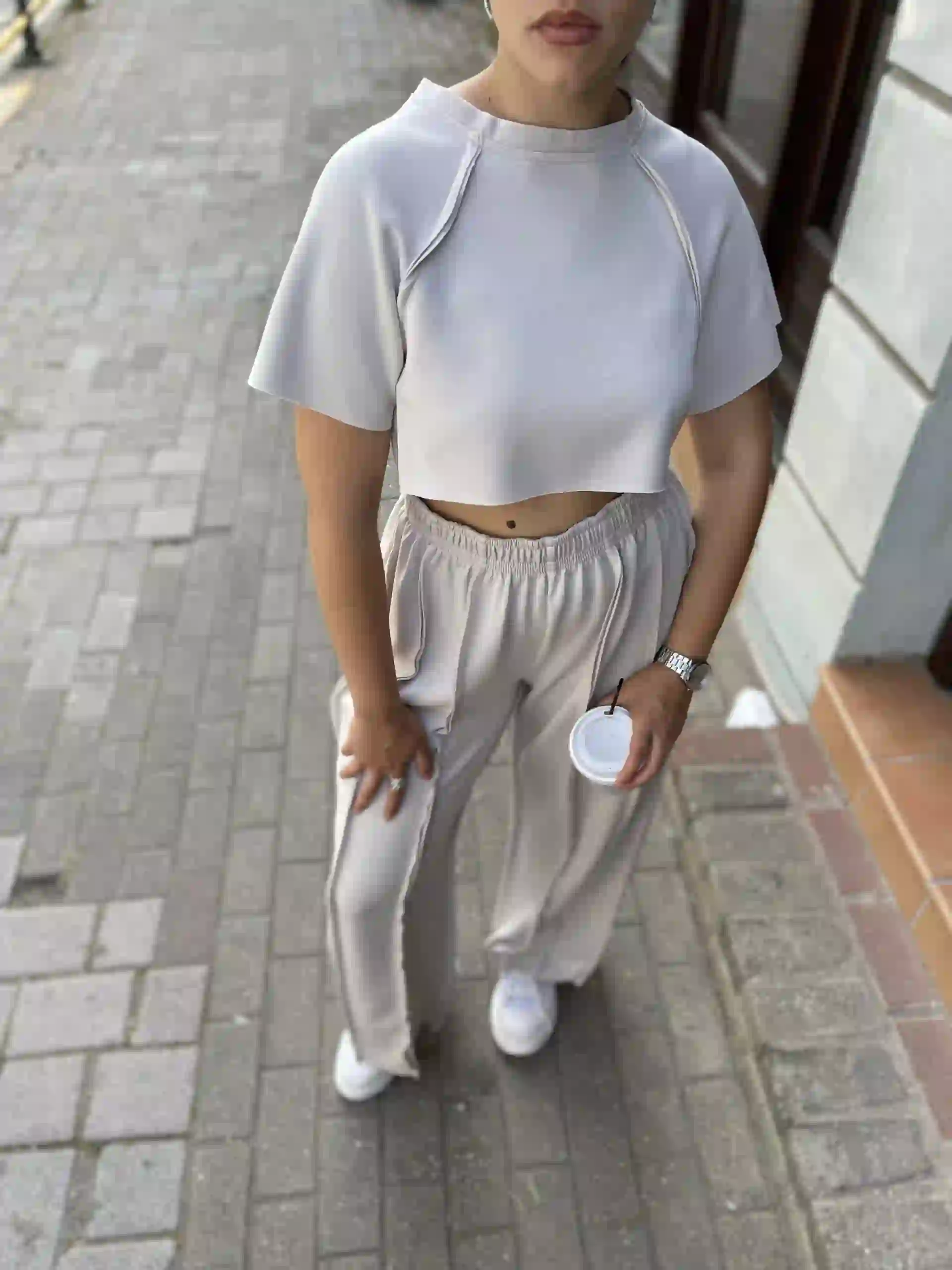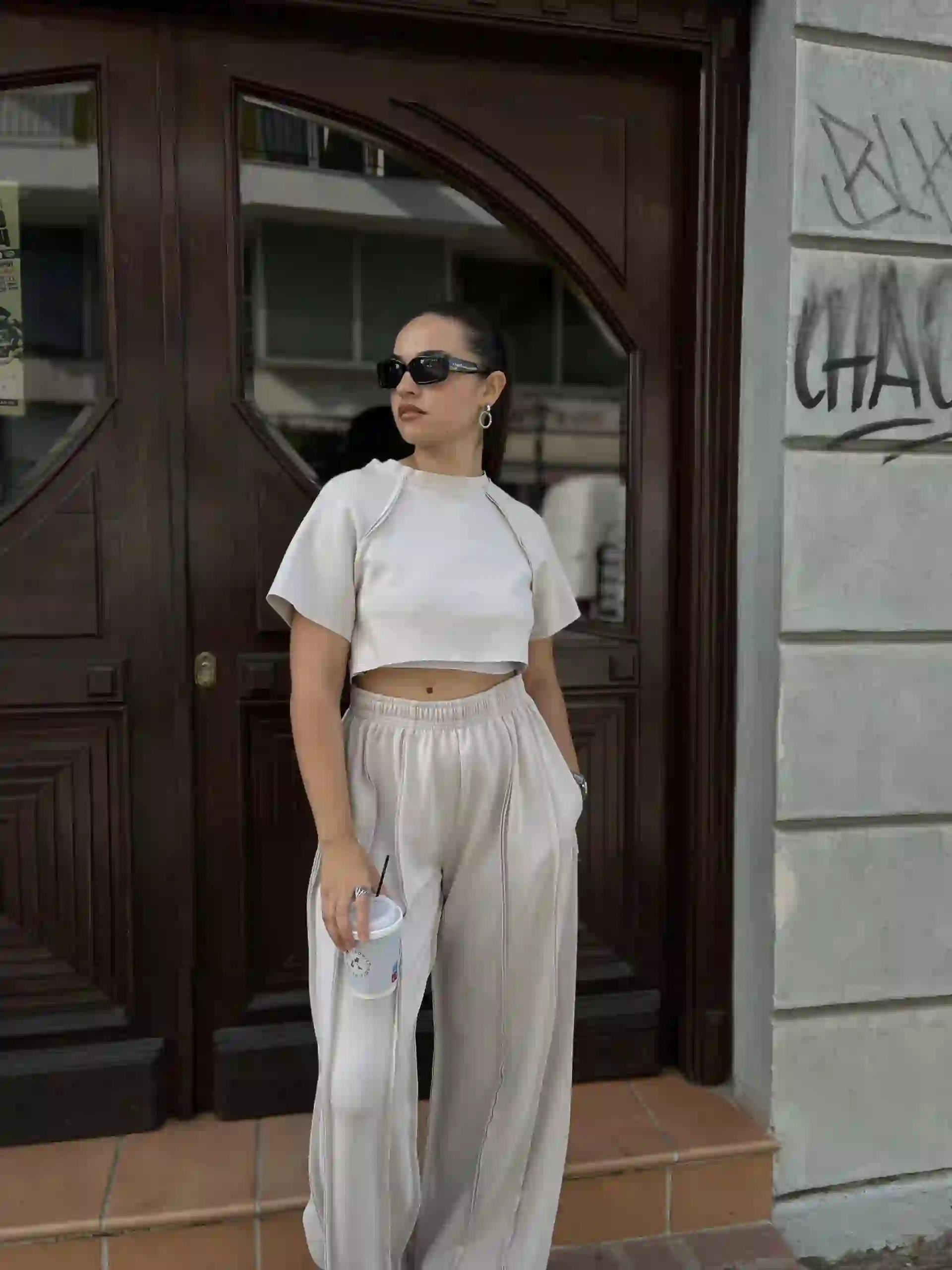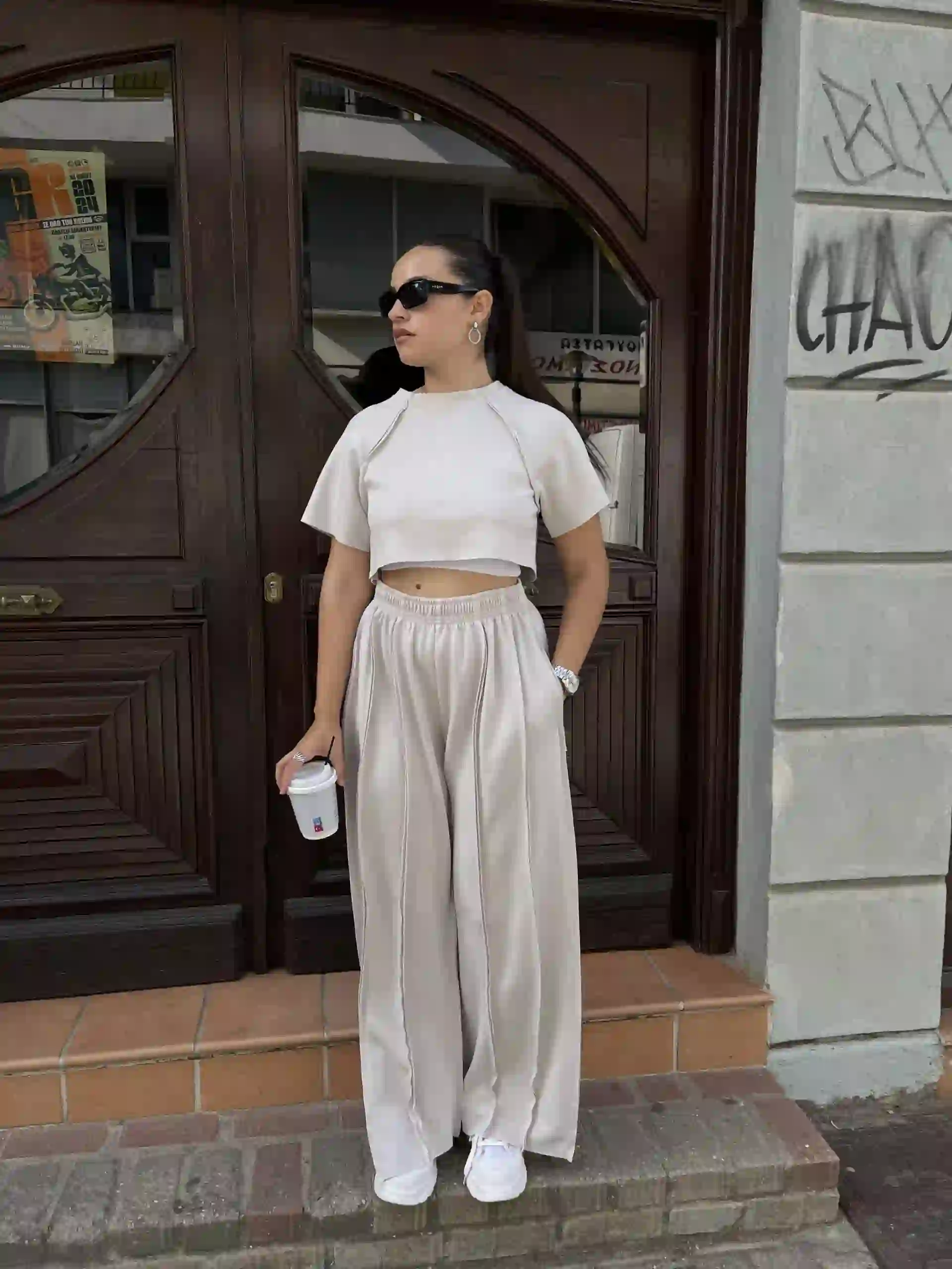 Super Baggy Wide Leg Σετ Φόρμας / Μπεζ