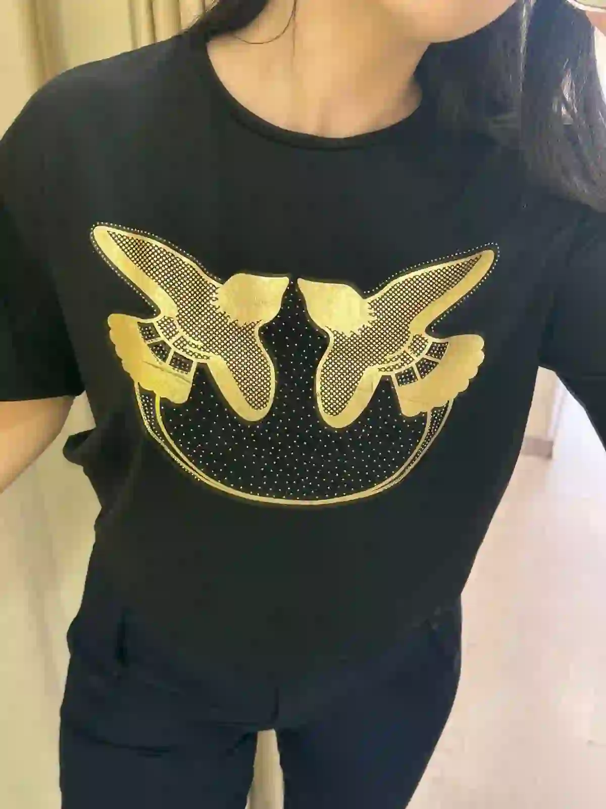 Βαμβακερη Μπλουζα Με Στρας- Μαυρο