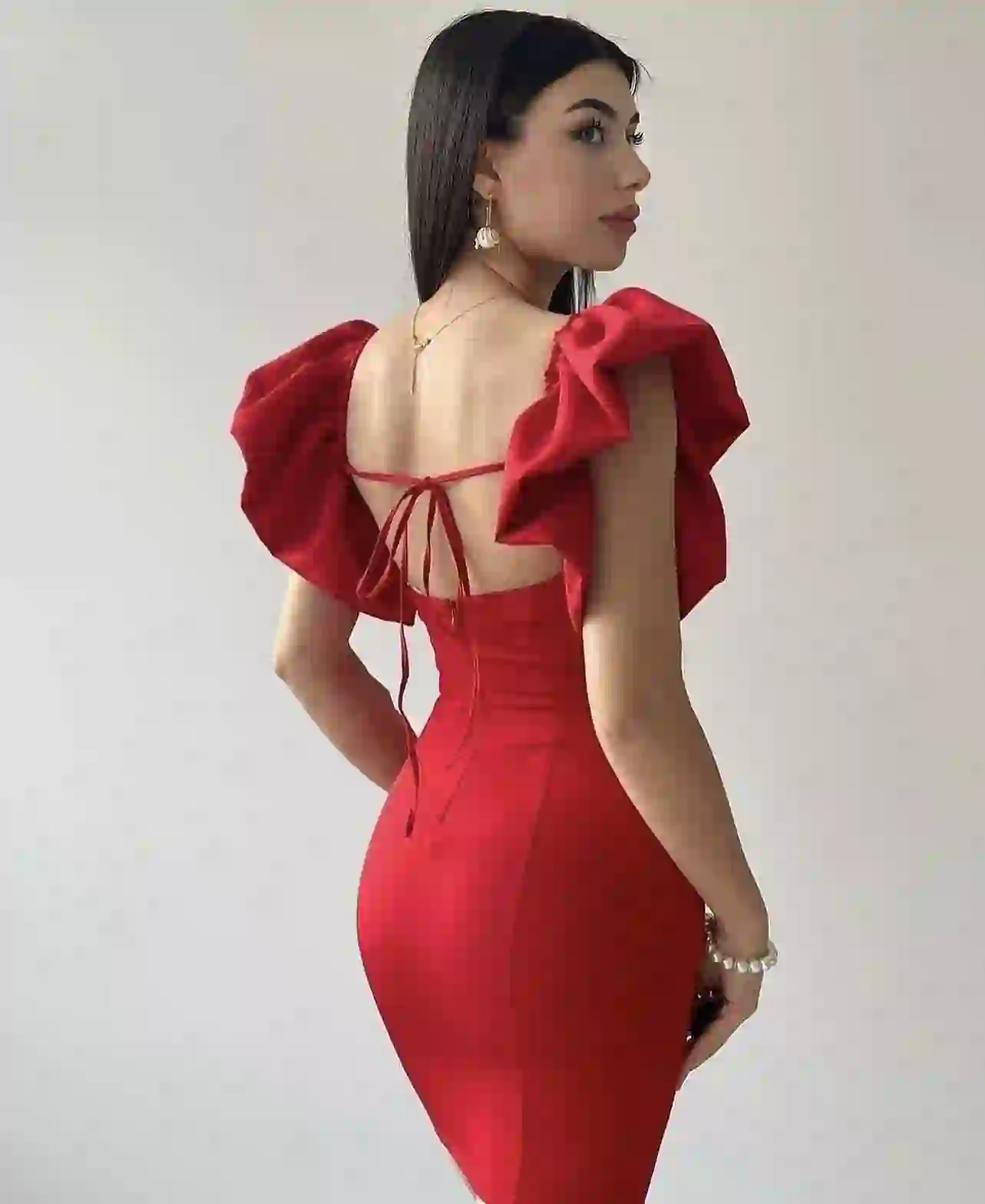 Βολάν κόκκινο φόρεμα με εξώπλατο και δέσιμο στην πλάτη ❣️