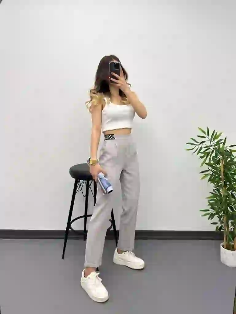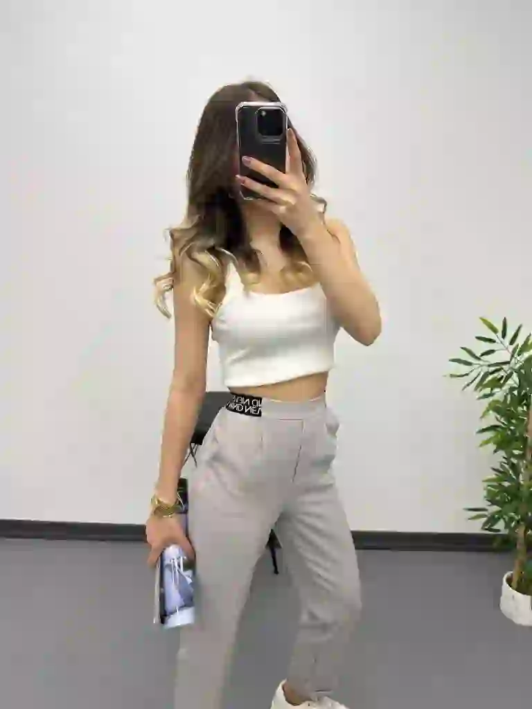 Υφασματινο Παντελονι Με Λαστιχο Στην Μεση- Γκρι